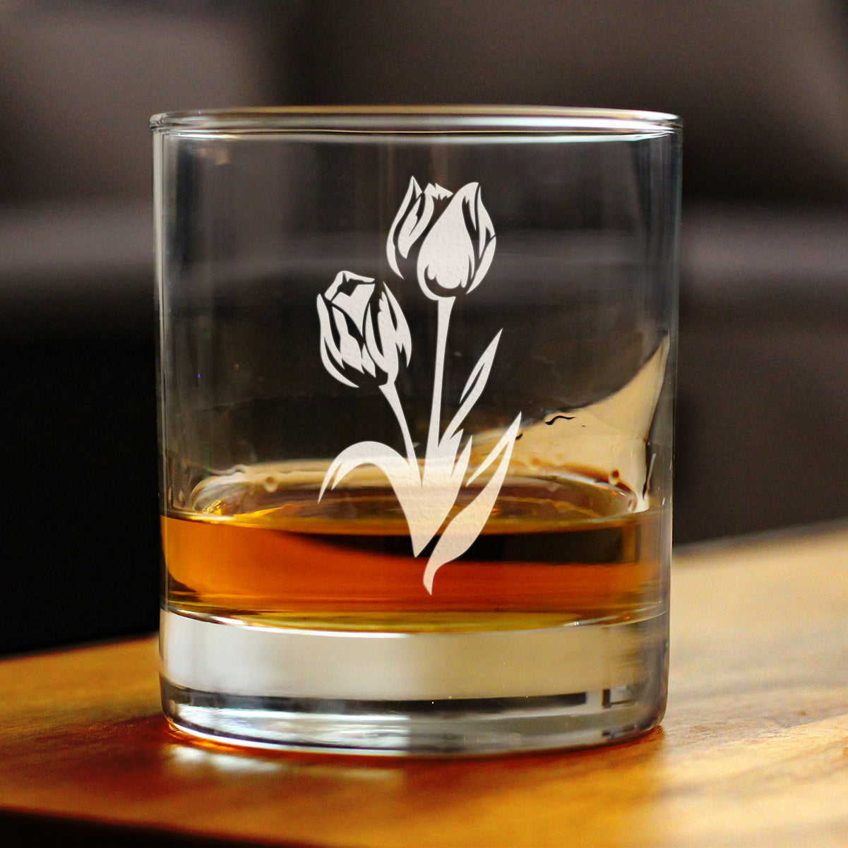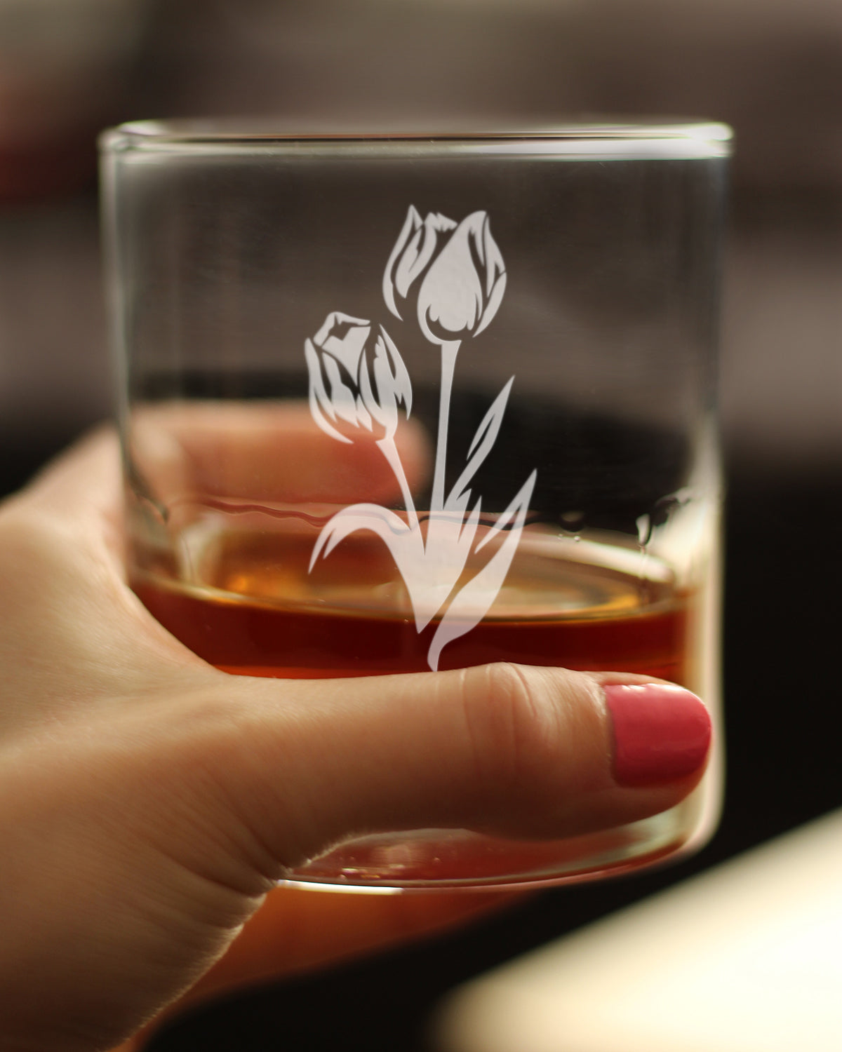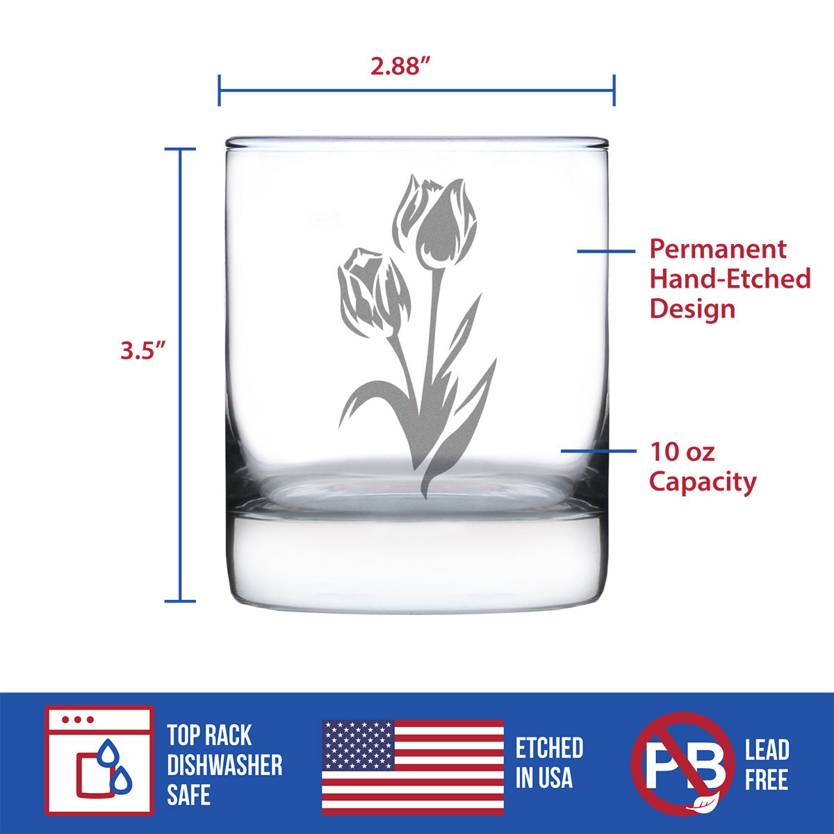 Tulip Whiskey Rocks Glass - Floral Themed Decor and Gifts for Flower Lovers - 10.25 Oz Glasses