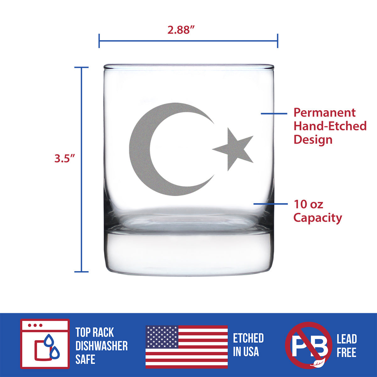 Turkey Flag Rocks Glass Engraved Old Fashioned Glasses for Men & Women - Fun 10.25 Oz Turkish Themed Gifts - Cute Gift for Turks