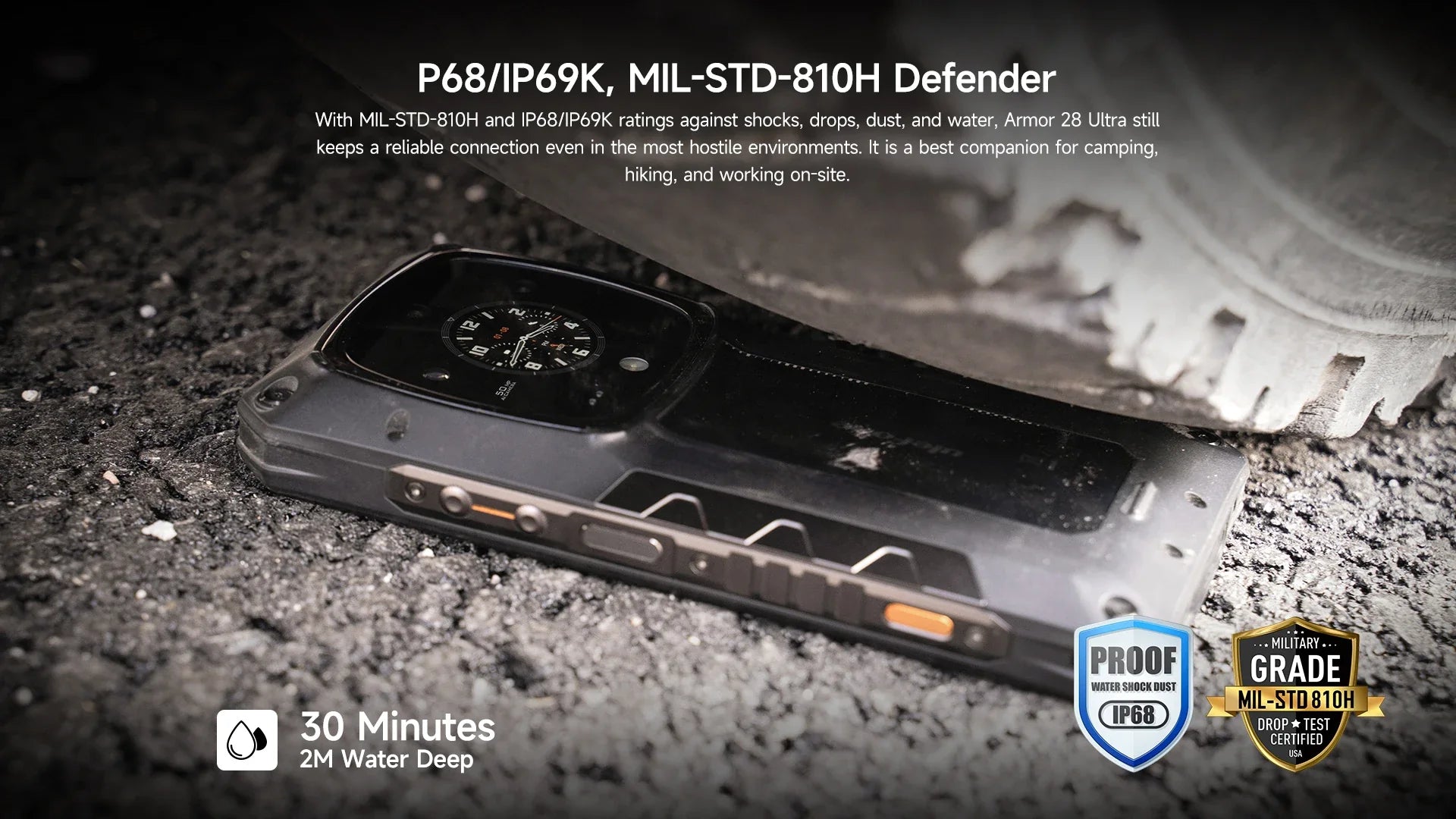 Kick hassle of cords but juice up swiftly with 50W wireless hyper charge, it only takes half an hour to charge Armor 28 Ultra for 35% battery.