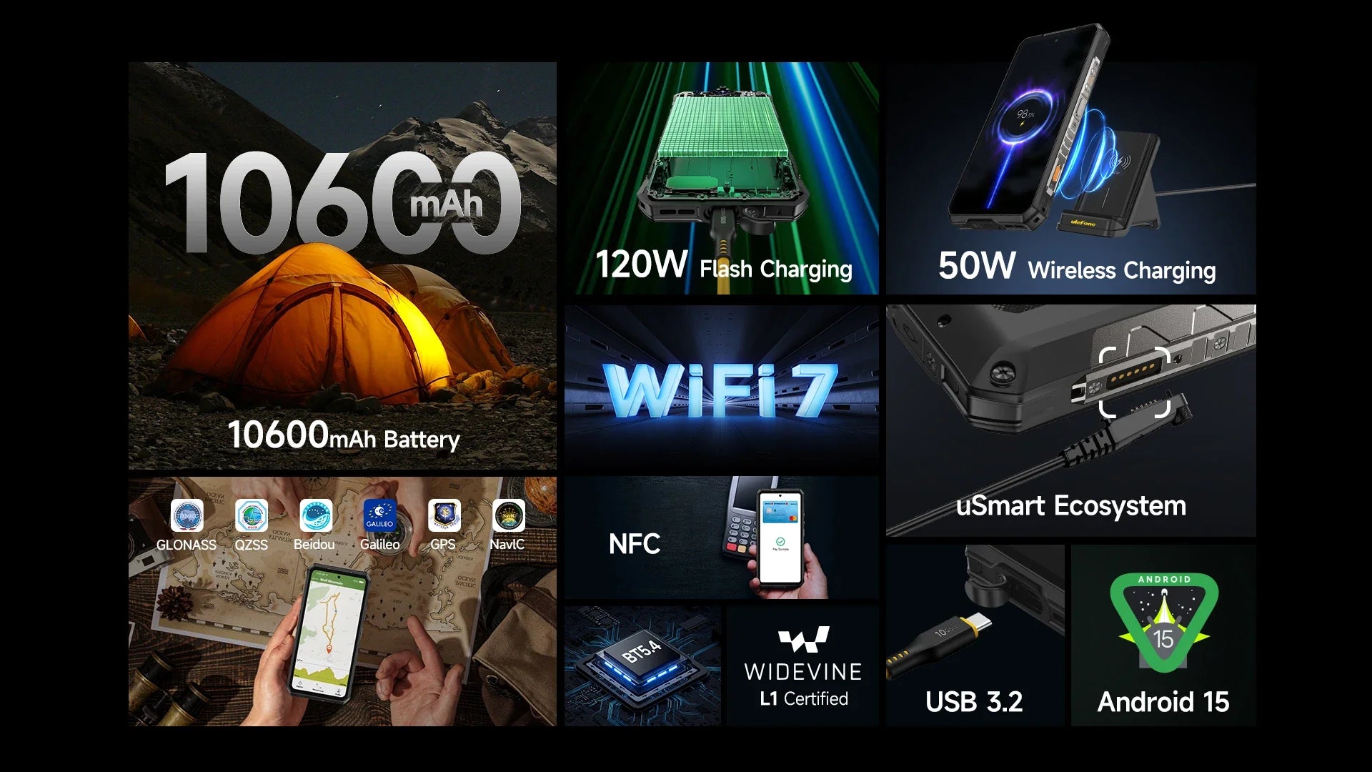 *A rated capacity of 5300mAh at 7.74V is equivalent to 10600mAh capacity. Power consumption data above are from Ulefone lab, which will be varied by actual usage.