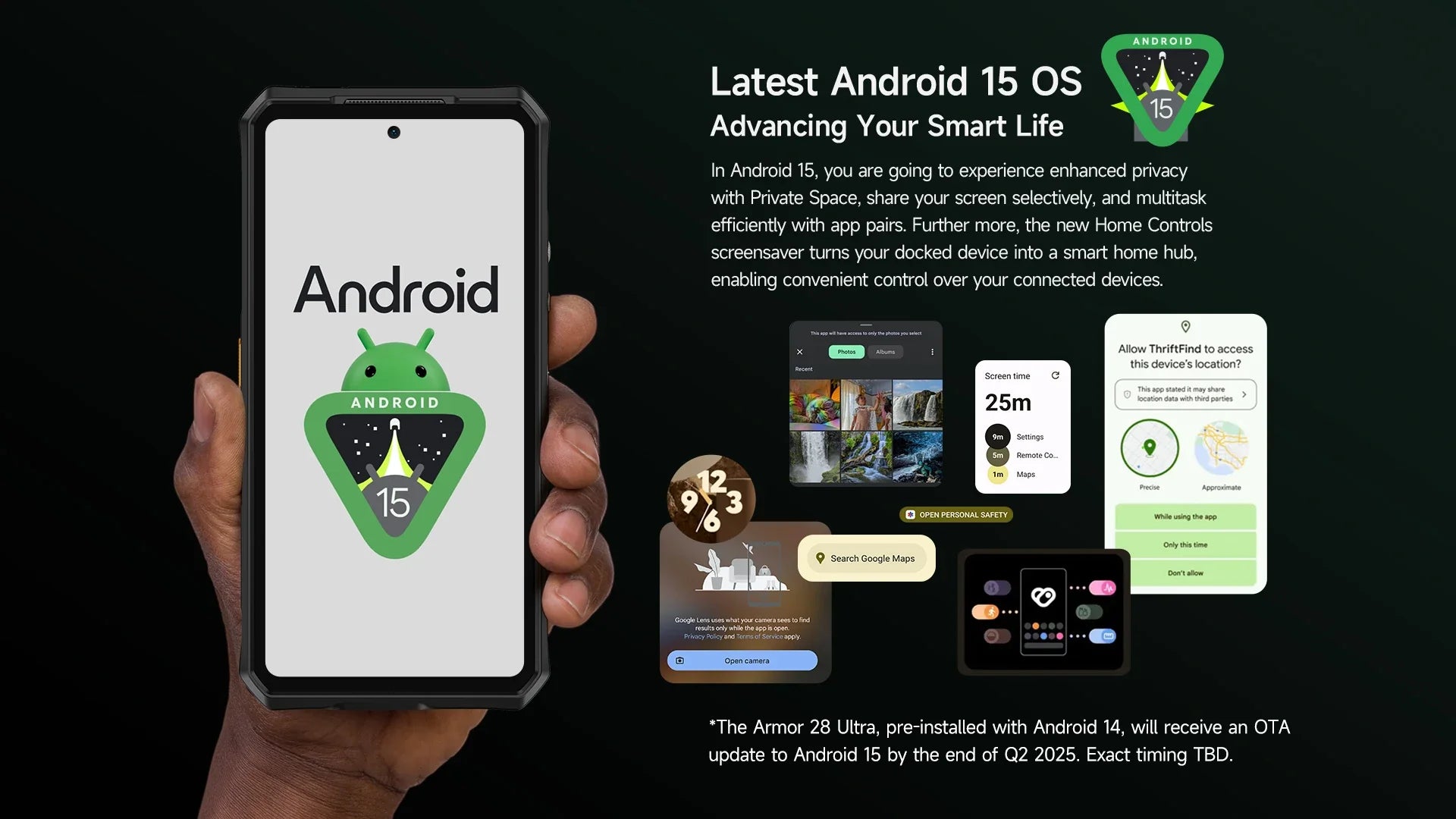 Android 14 (Pre-installed with Android 14, you can update to Android 15 in Q2 2025 via OTA. Timing to be announced.) |
