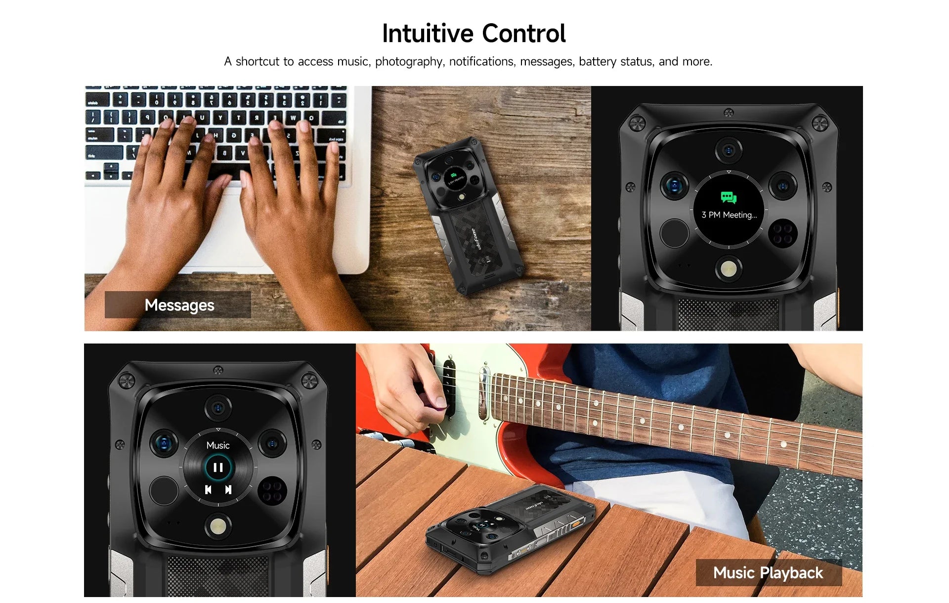 A tribute to the indomitable spirit of the expedition with a watch-inspired design that transcends time. With camera modules centered around an embedded watch sub-screen, creating a sleek square dial appearance. The trio of cameras embodies vision, courage, and excellence, while the black and white spatial grid pattern of the strap reflects the classic outdoor gear, the enduring nature of exploration, and the pursuit of the unknown.