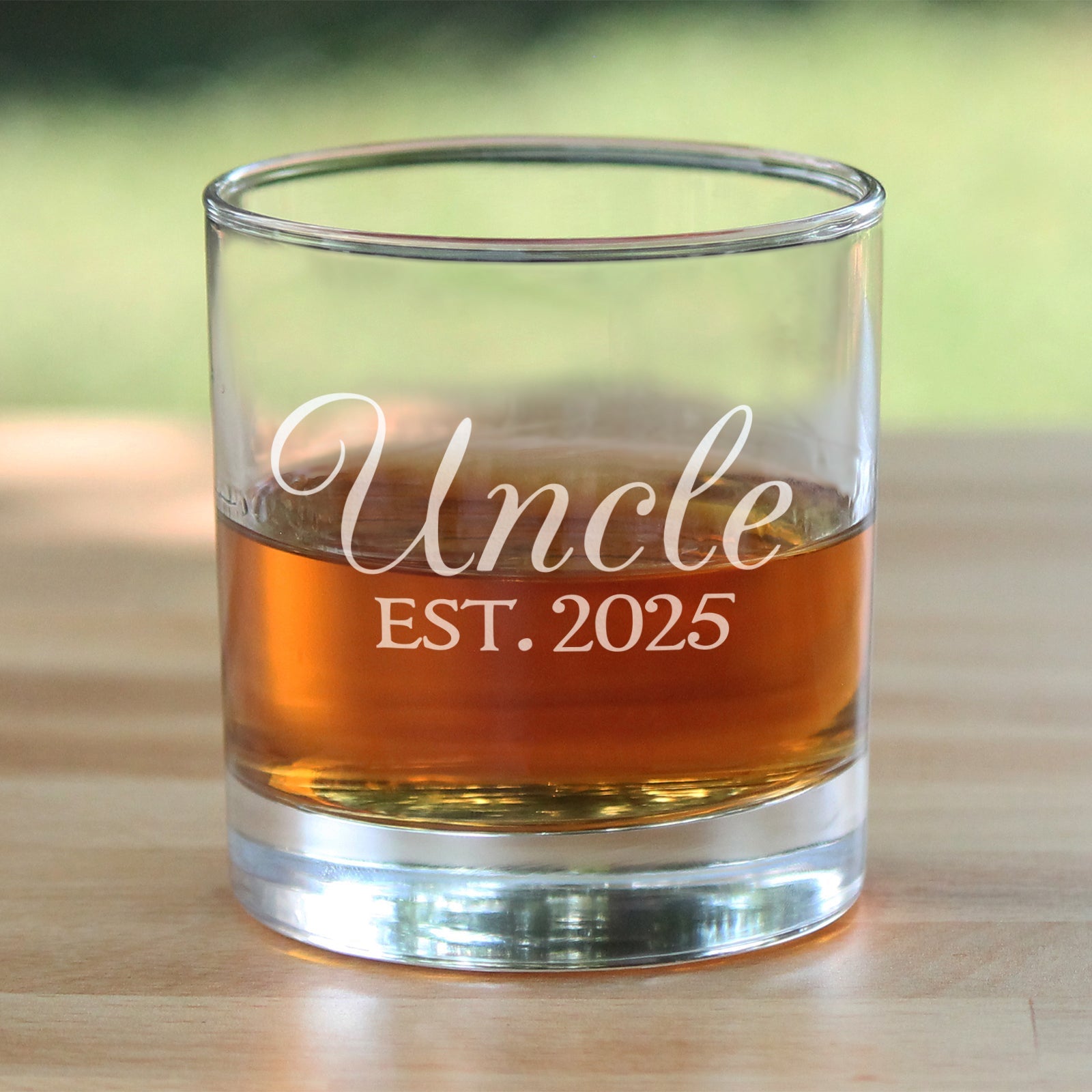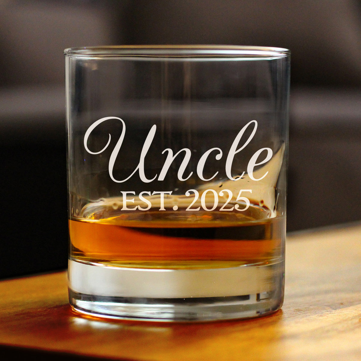 Uncle Est 2025 - Whiskey Rocks Glass Gift for First Time Uncles - Decorative 10.25 Oz Glasses