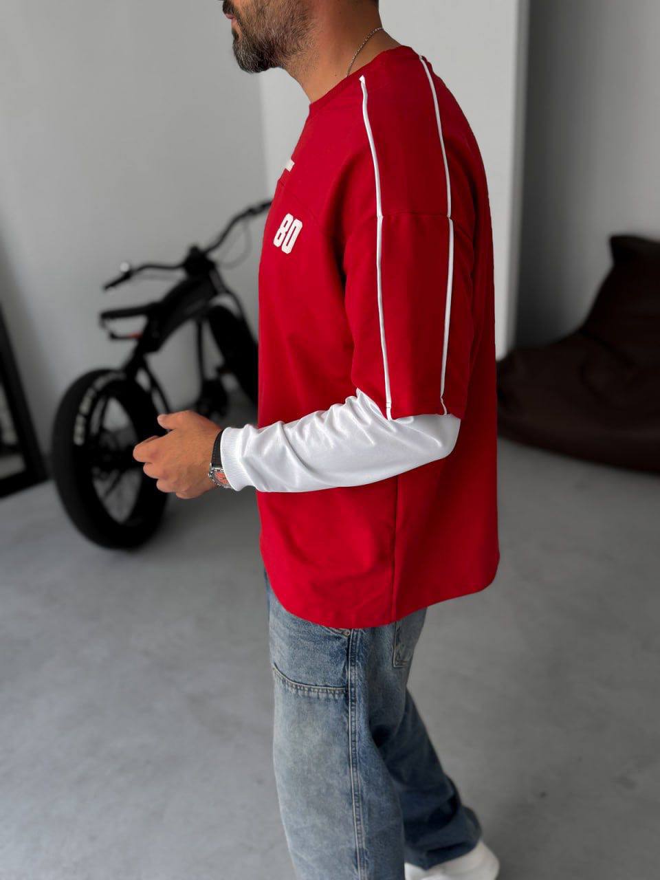 Unisex Graphic Print Oversize T-Shirt - American Football Style ‐ Red / XL