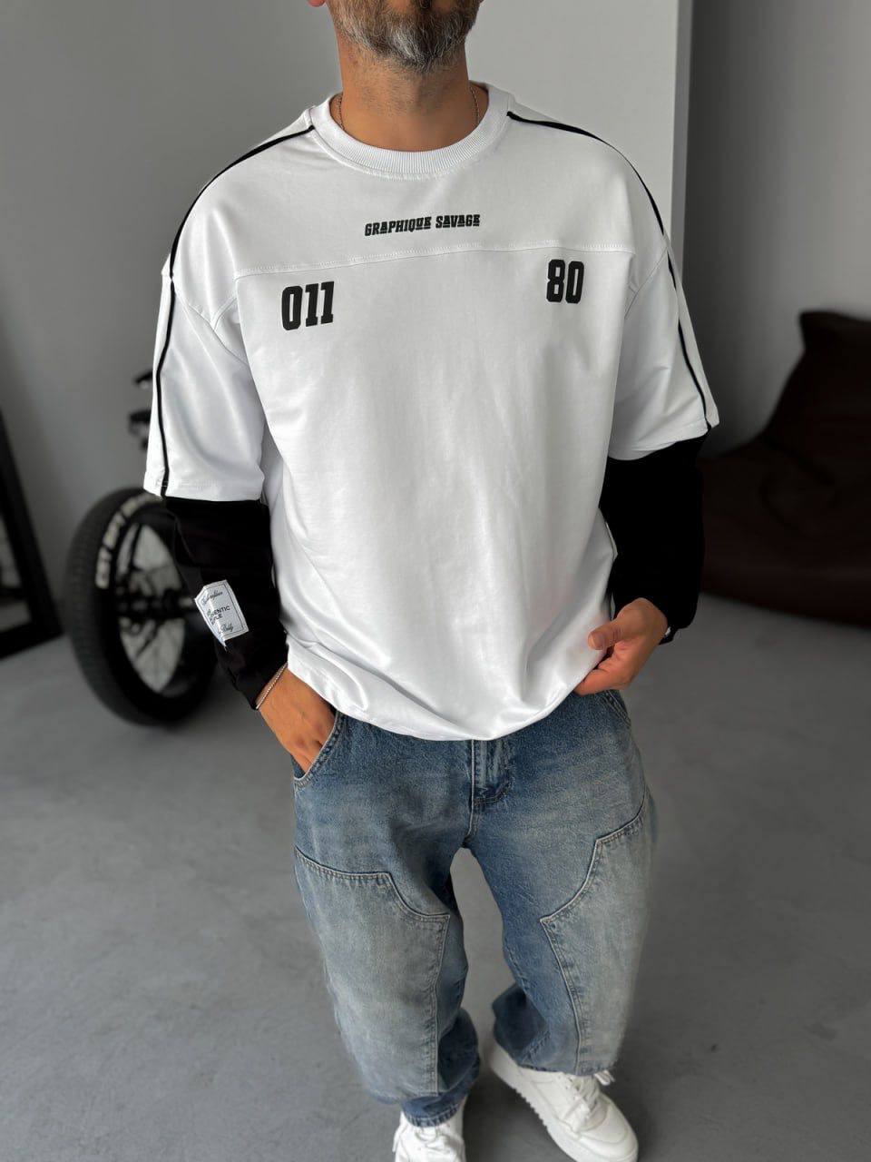 The Unisex Graphic Print Oversize T-Shirt brings boldness and comfort together. Inspired by American football uniforms, this tee features a wide fit and eye-catching front print, making it a true streetwear essential.