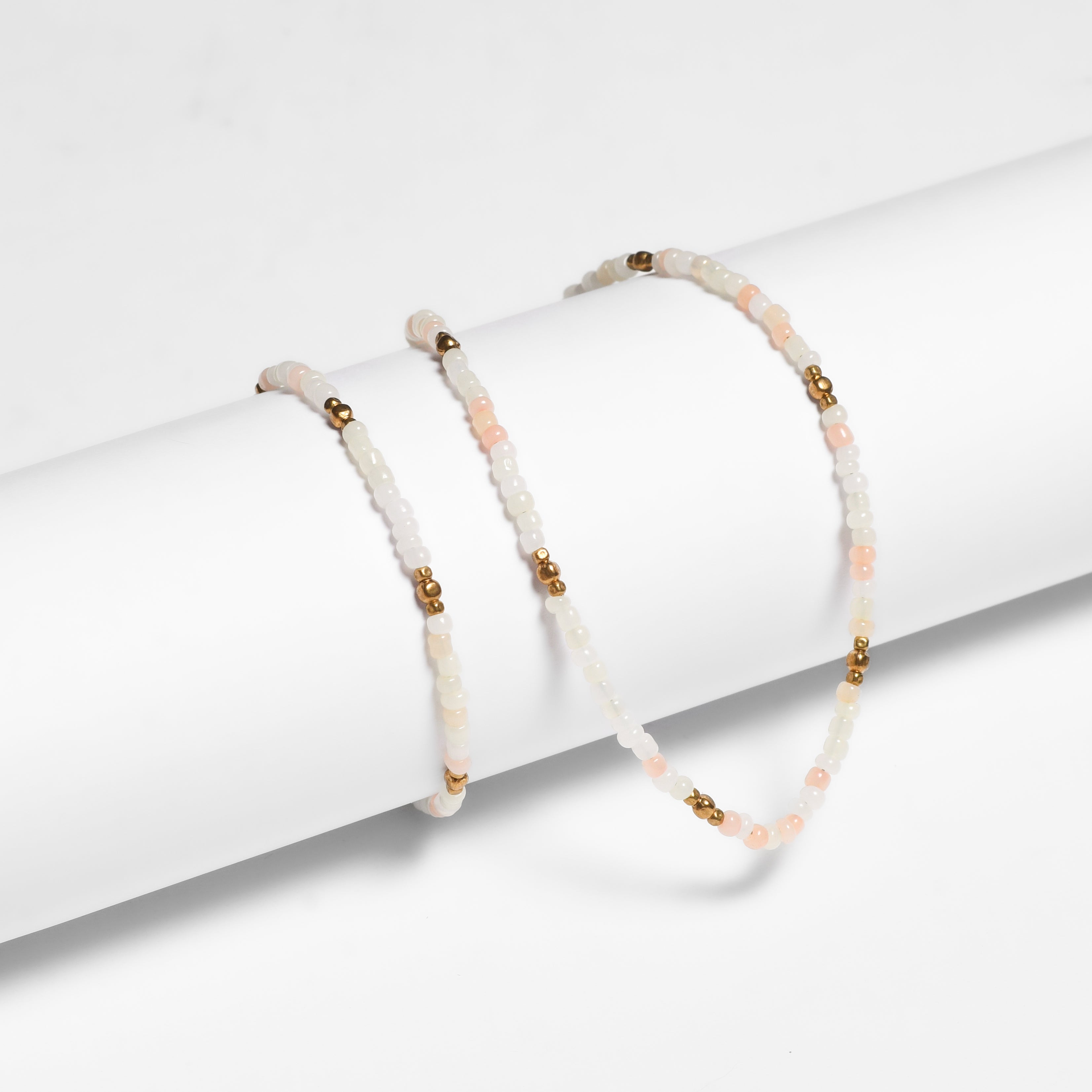 Veranda Beaded Choker and Bracelet Set - Thailand ‐ Peach