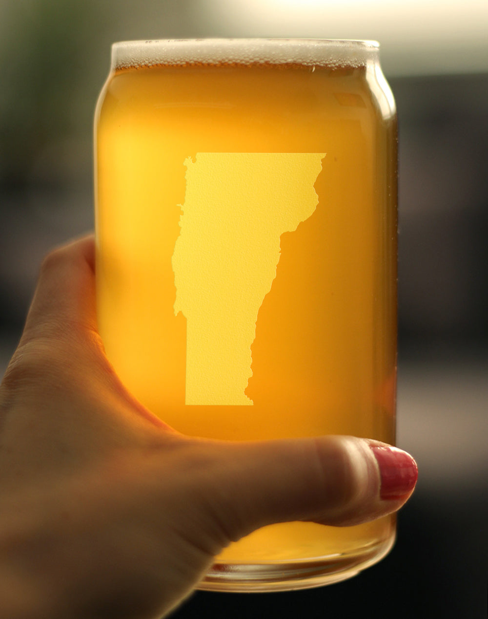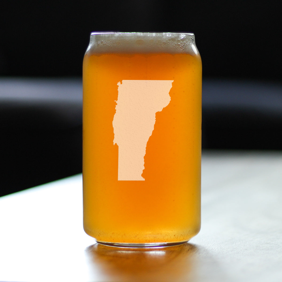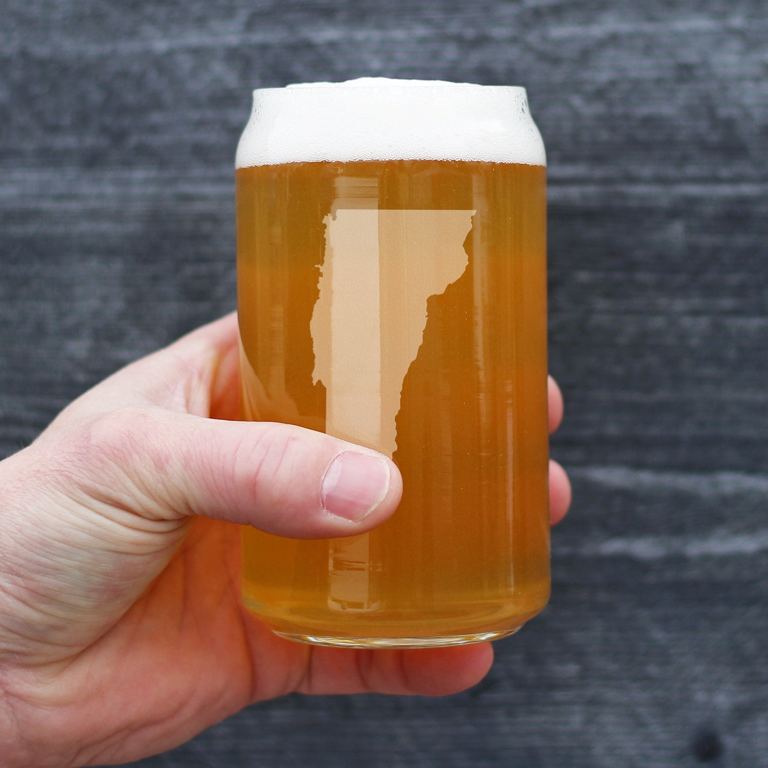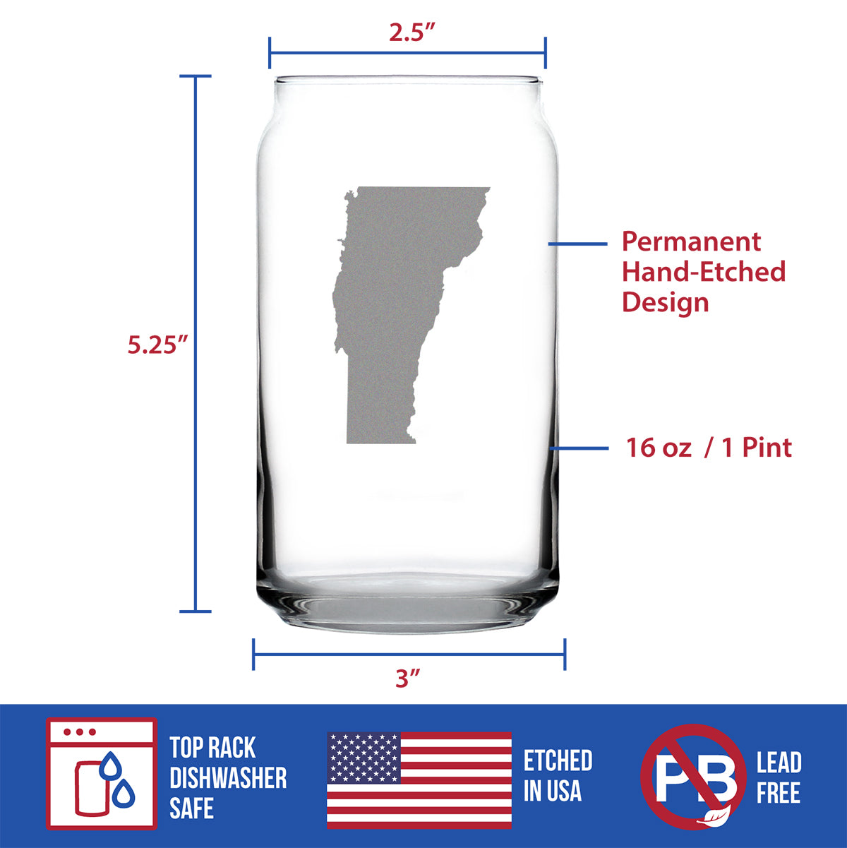 Vermont State Outline Beer Can Pint Glass - State Themed Drinking Decor and Gifts for Vermonter Women & Men - 16 Oz Glasses