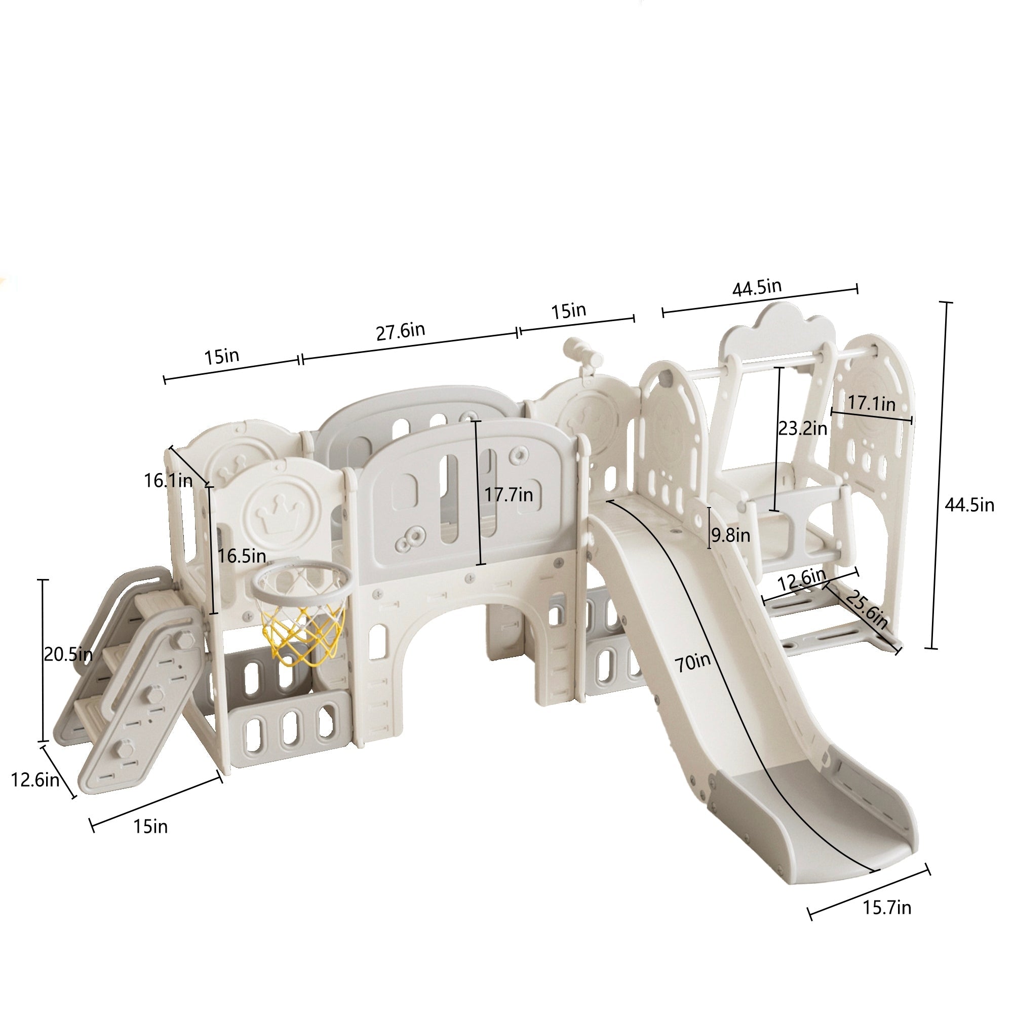 Versatile Toddler Slide with 11-in-1 Activity Center, Grey+Ivory, Polyethylene, 116.54in