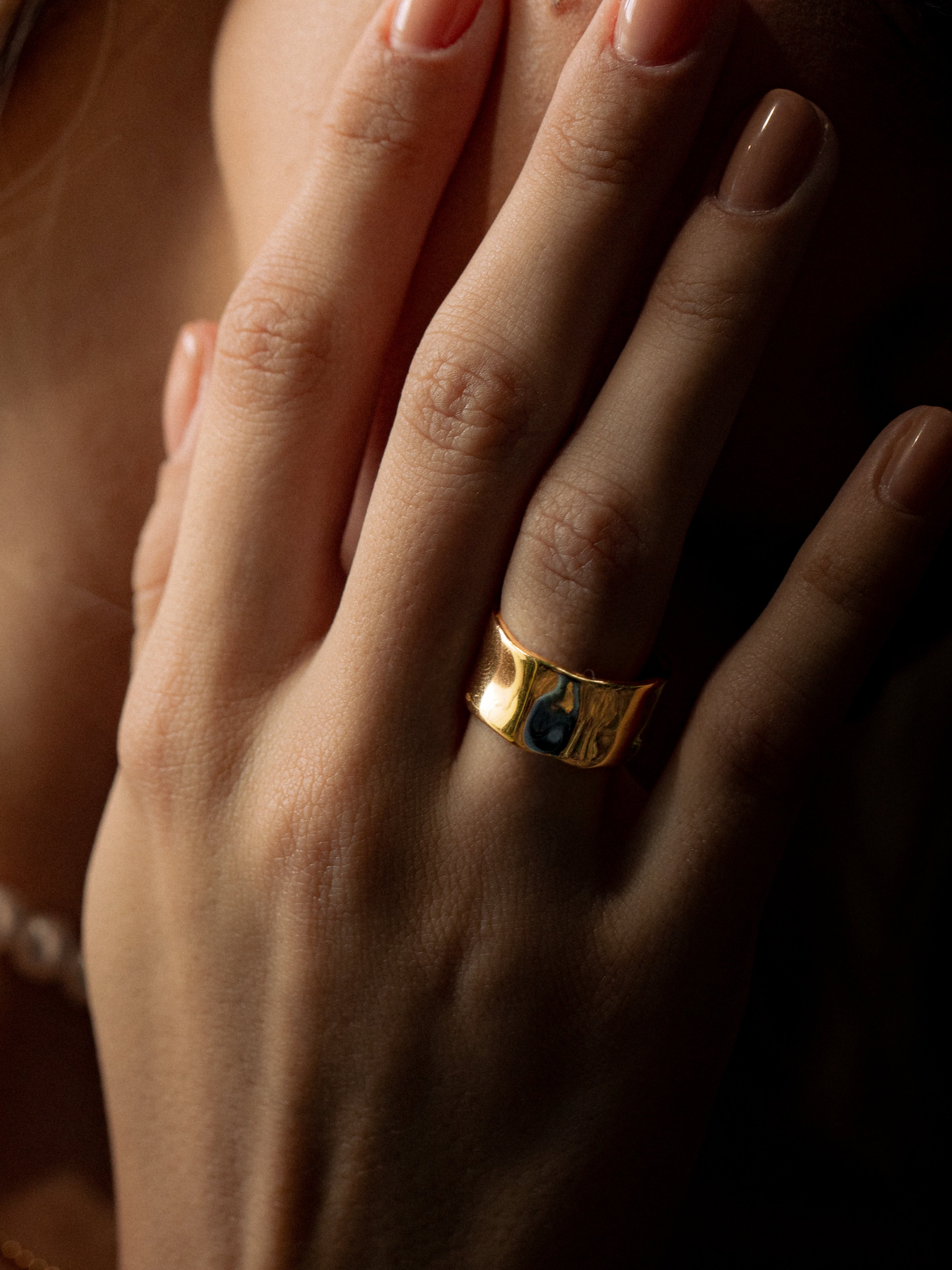 Introducing MARU, the bold and essential ring that's a breeze to wear! Made of hypoallergenic 925 silver and layered with 14k gold, this ring is both stylish and gentle on sensitive skin. Make a statement with MARU today!