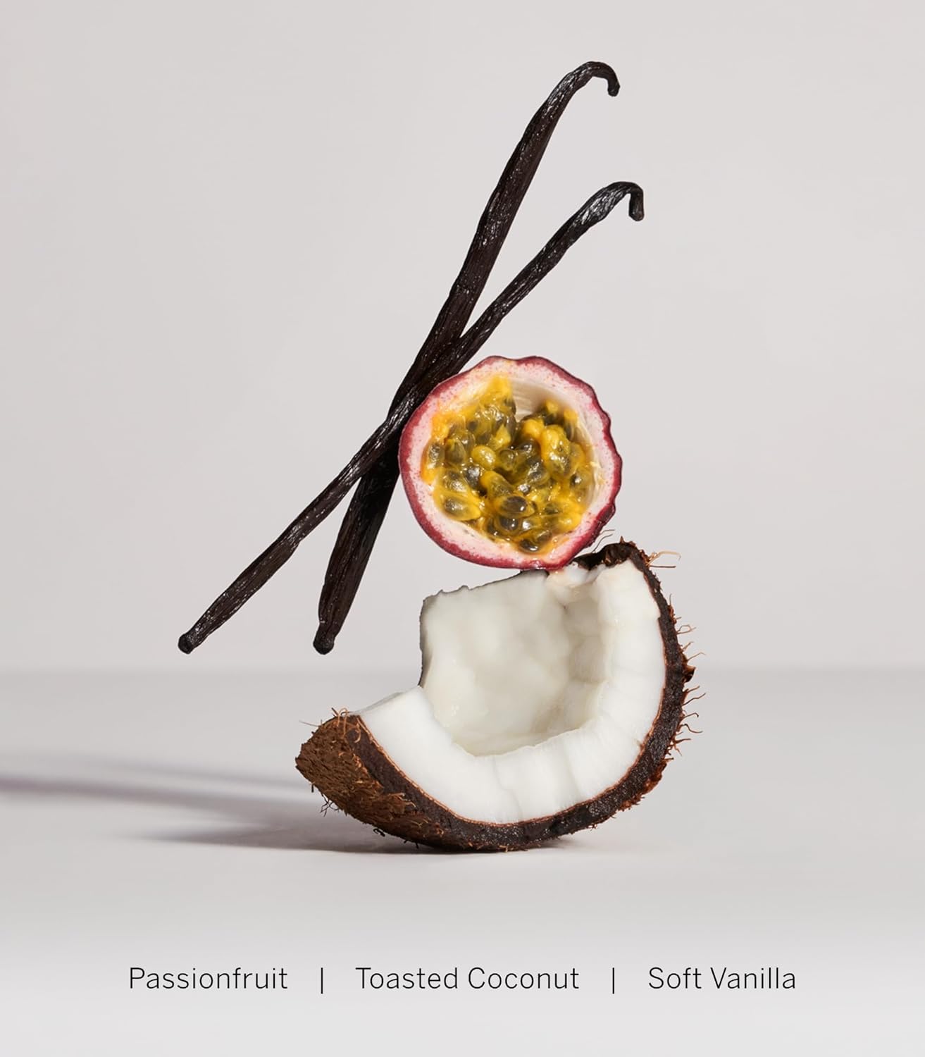 - This is your best-friend in fragrance form. Cushy, comforting vanilla, yummy toasted coconut—and that kick of juicy passionfruit? Not too much, not too little. Just right, every time.