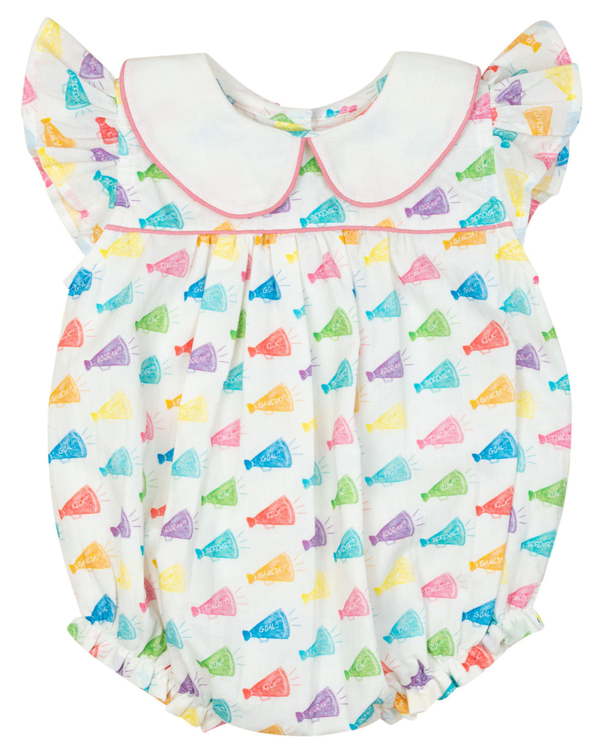 Your little all-star will be game-day ready in the Victory Football Cheer Bubble! Featuring an adorable flutter sleeve design, soft fabric, and playful football-themed fabric, this one-piece is perfect for cheering on their favorite team in style.