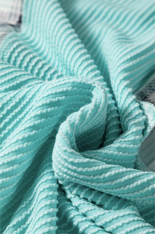Viscose Corded Texture Plaid Patchwork Split Top ‐ BLUE / S