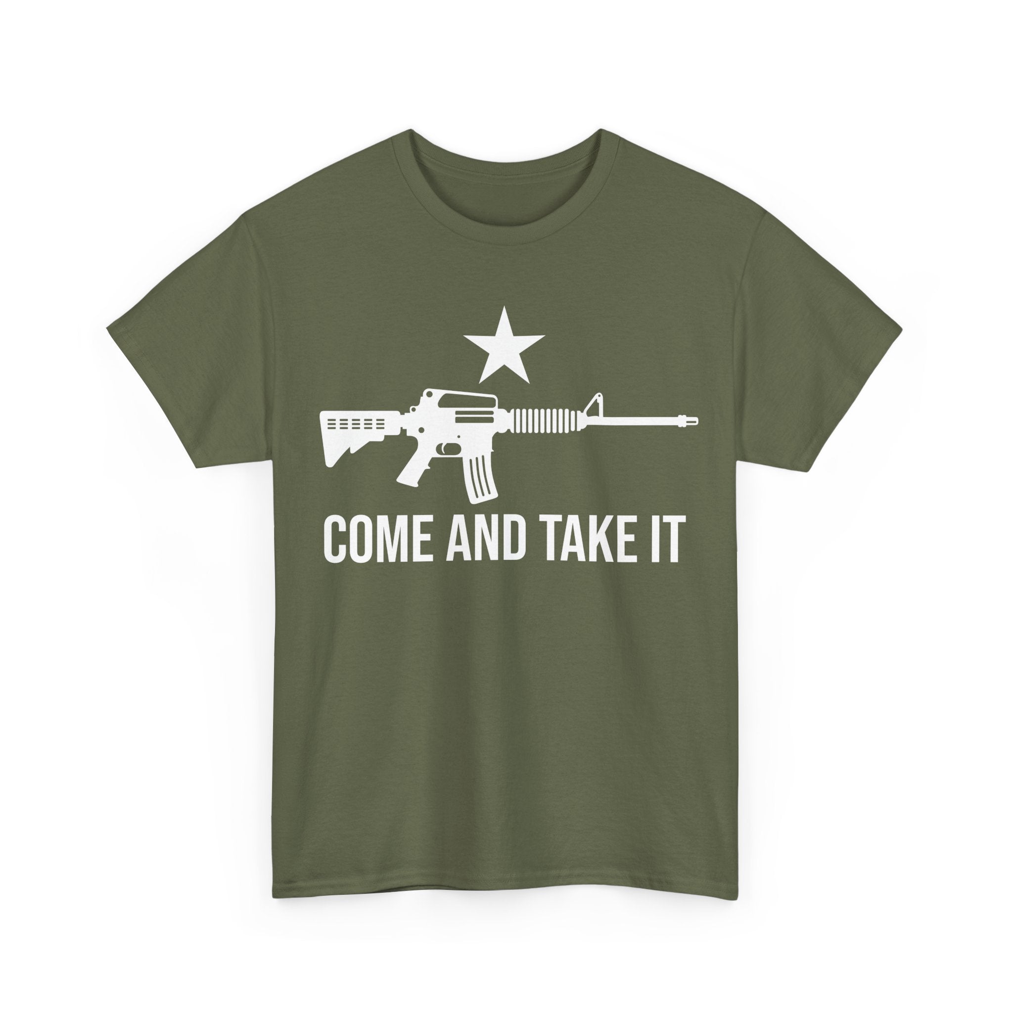 Crafted from high-quality materials, our t-shirt is designed to provide you with maximum comfort and durability, making it the perfect choice for everyday wear. Whether you're a gun enthusiast or simply looking for an eye-catching tee, our "come and take it" AR15 shirt is sure to impress.