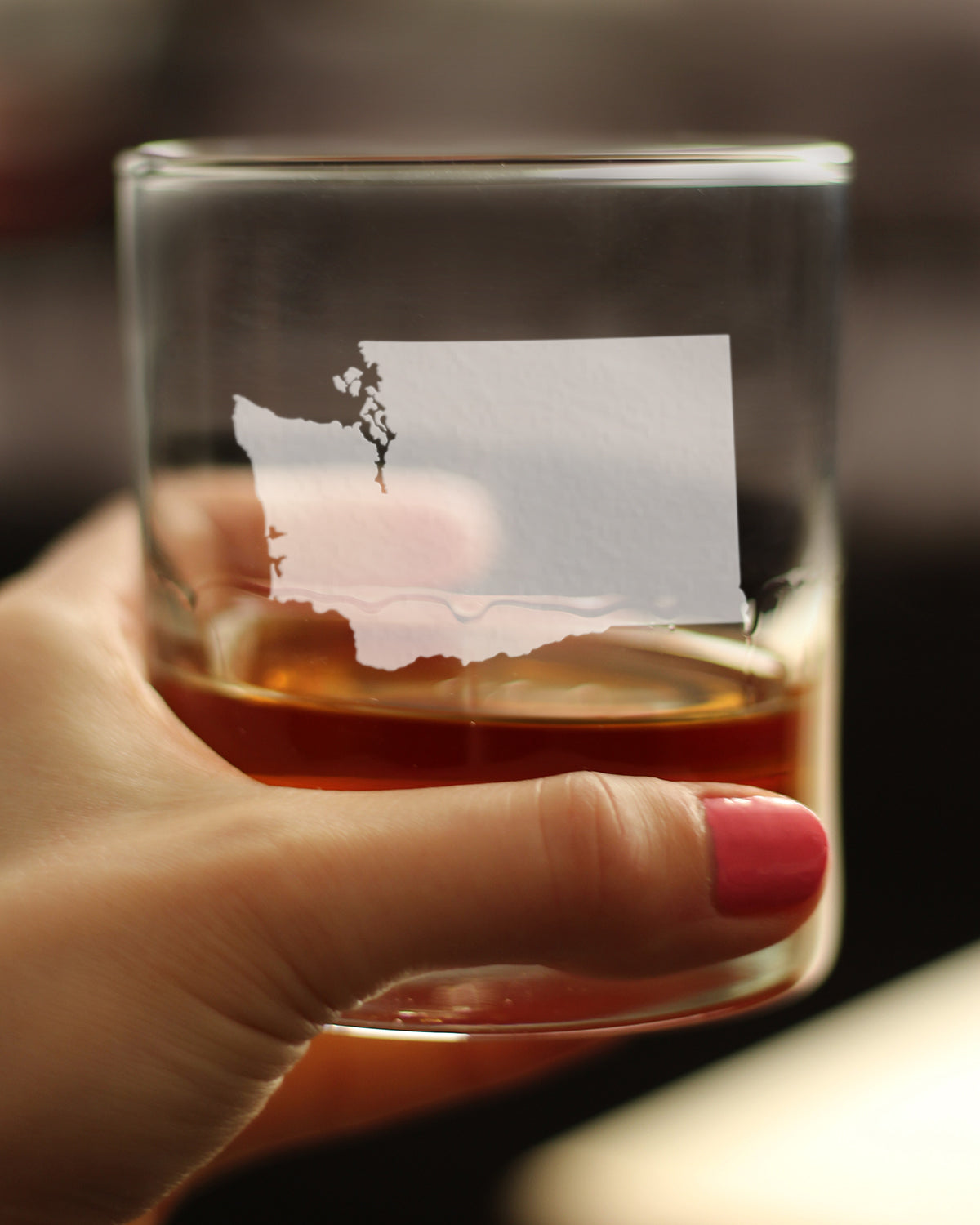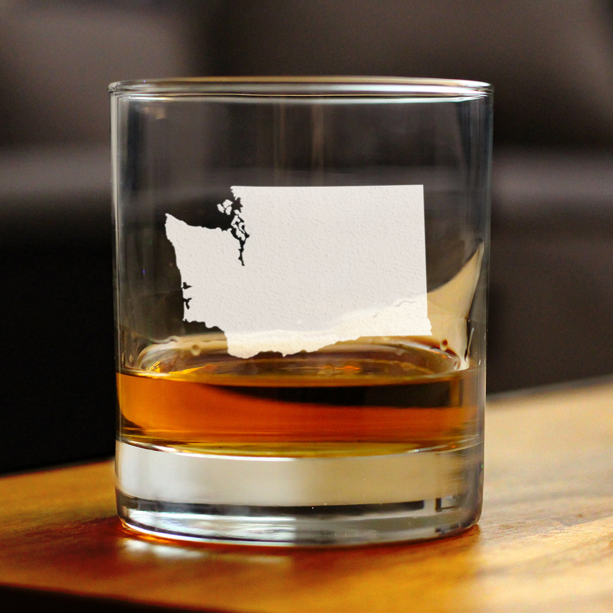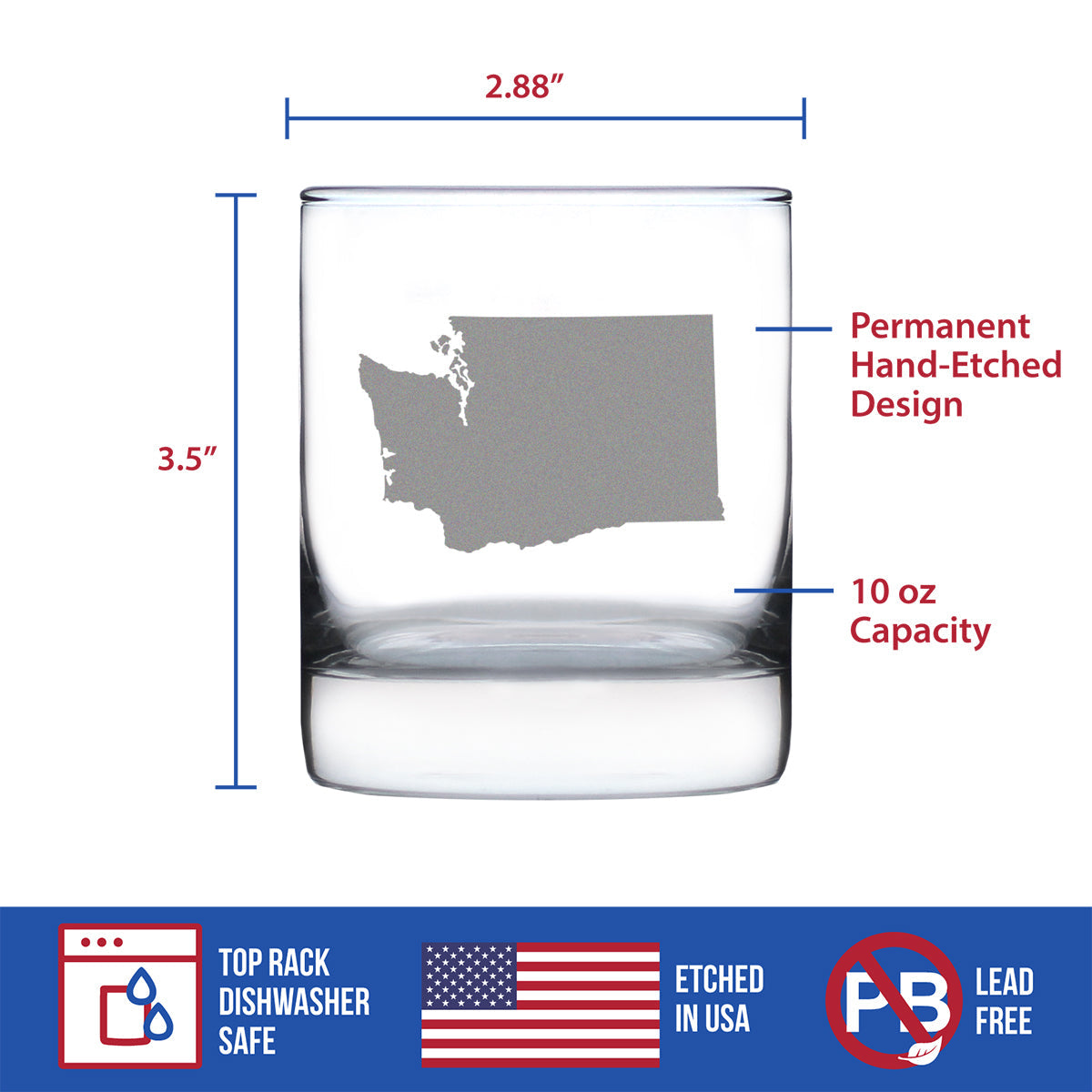 Washington State Outline Whiskey Rocks Glass - State Themed Drinking Decor and Gifts for Washingtonian Women & Men - 10.25 Oz Whisky Tumbler Glasses