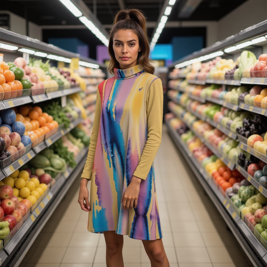 Watercolor Drip Women's High Neck Dress With Long Sleeves