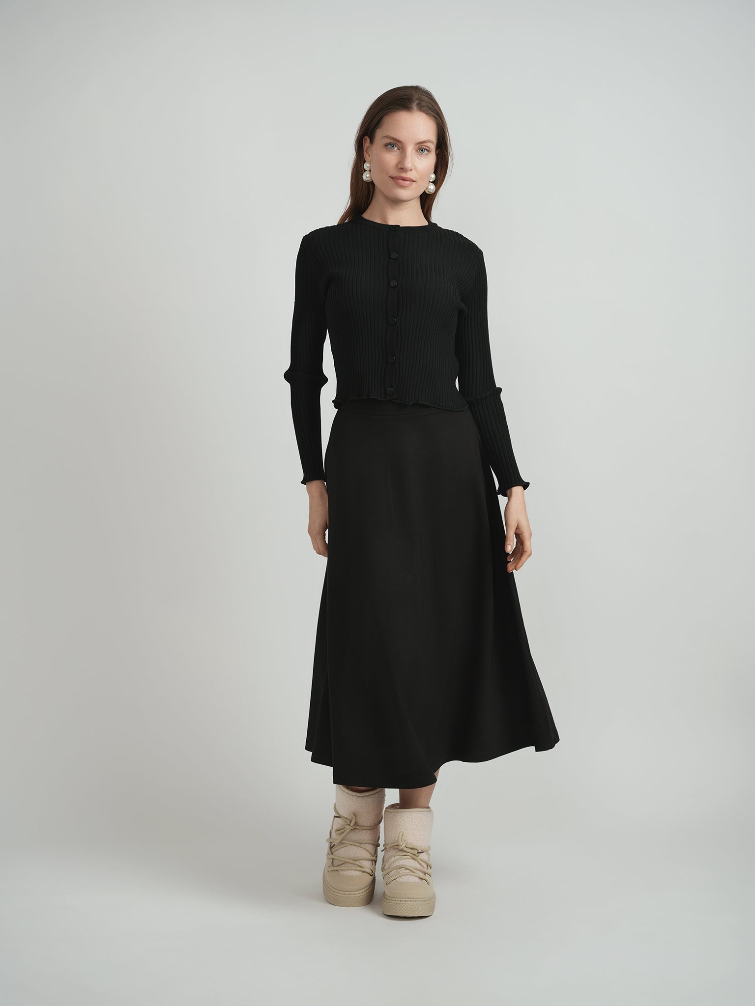 Wide Rib Cropped Knit Cardigan ‐ Black / XS