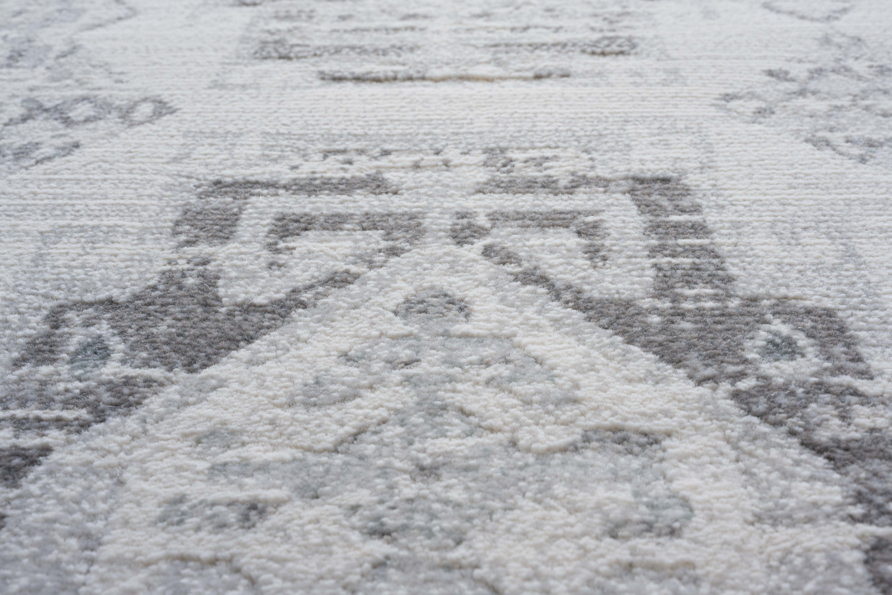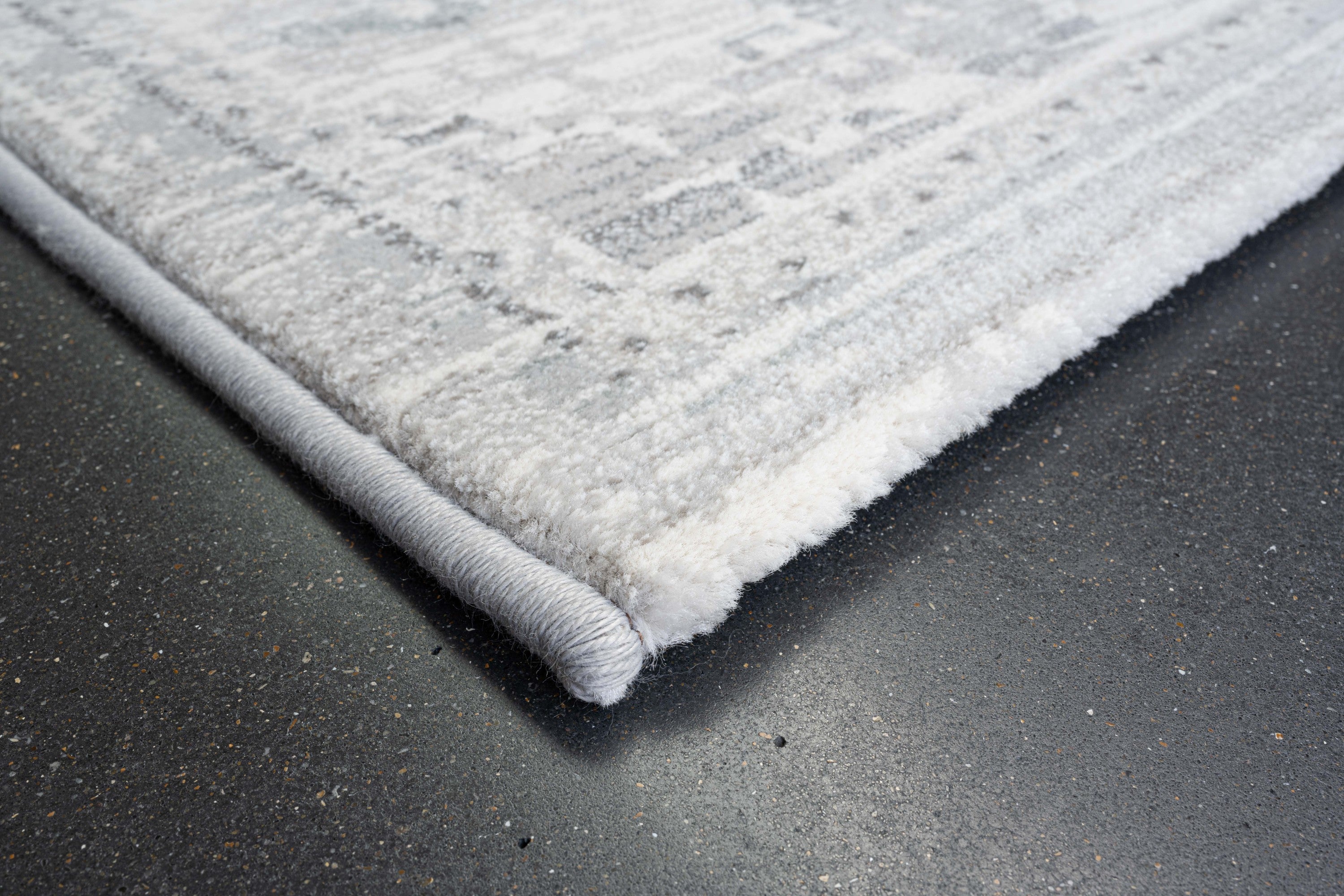 - Transitional shag style in neutral ivory, grey and beige