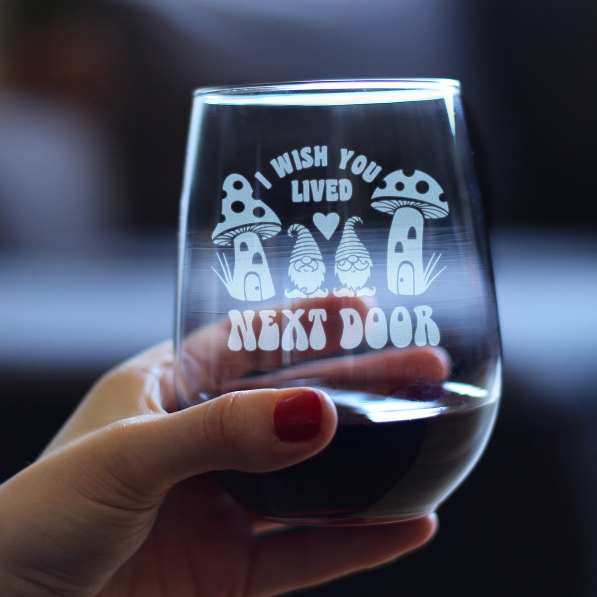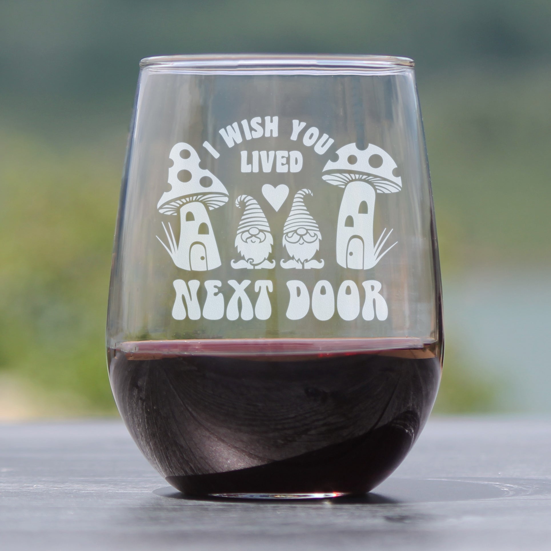Wish You Lived Next Door - Stemless Wine Glass Gift - Gifts for Long Distance Best Friend - Large 17 Ounce
