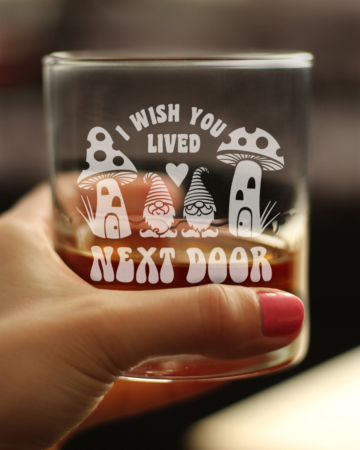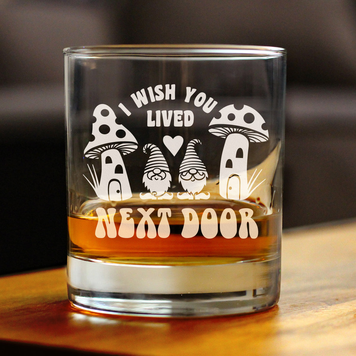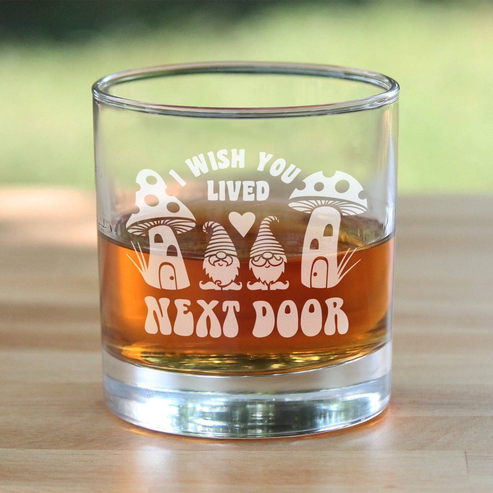 Wish You Lived Next Door - Whiskey Rocks Glass Gift - Gifts for Long Distance Best Friend - 10.25 oz Glasses