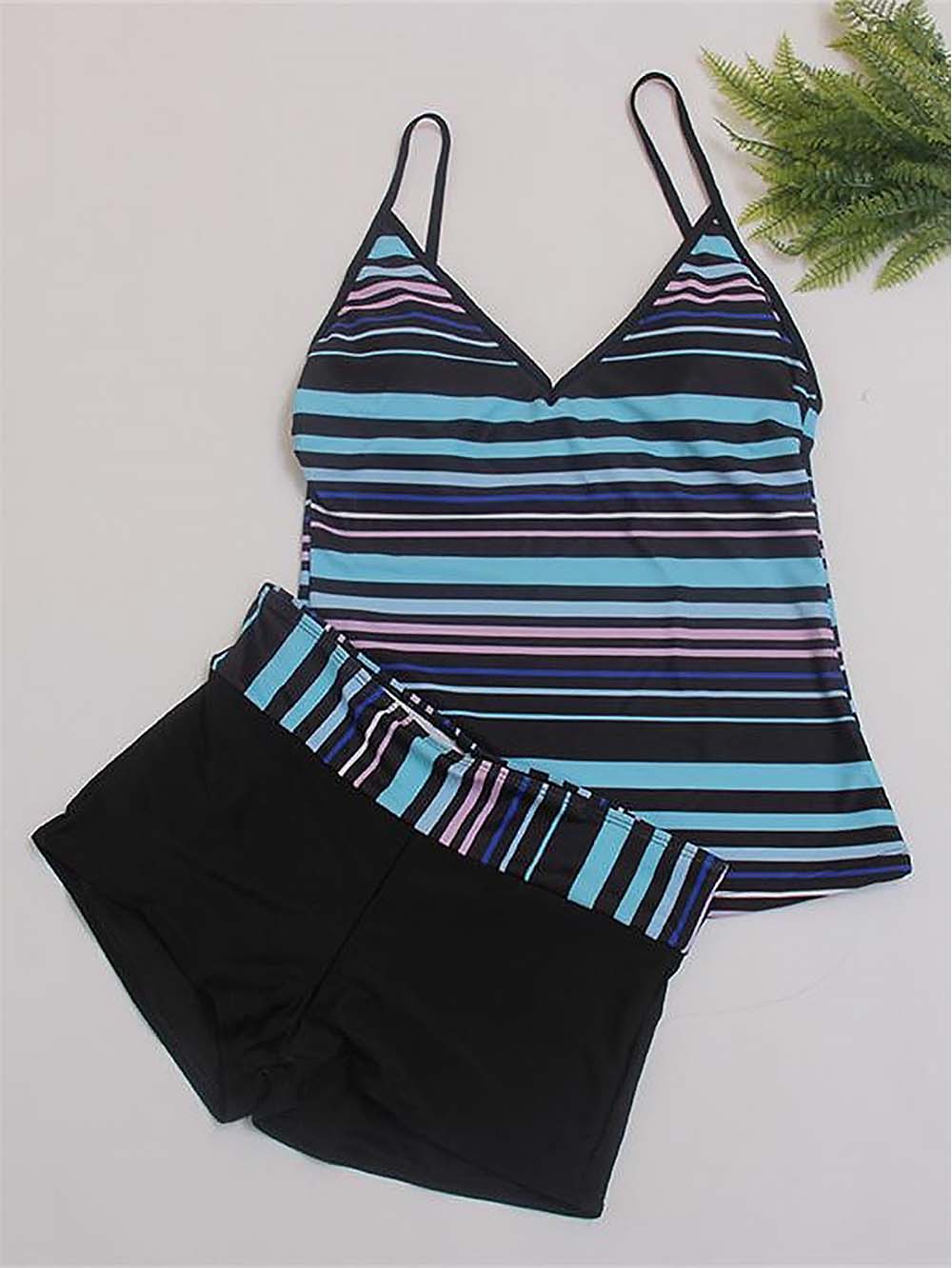 Women Printed Striped Split 2 Pieces Swimsuit | ZAKAPOP ‐ 2XL