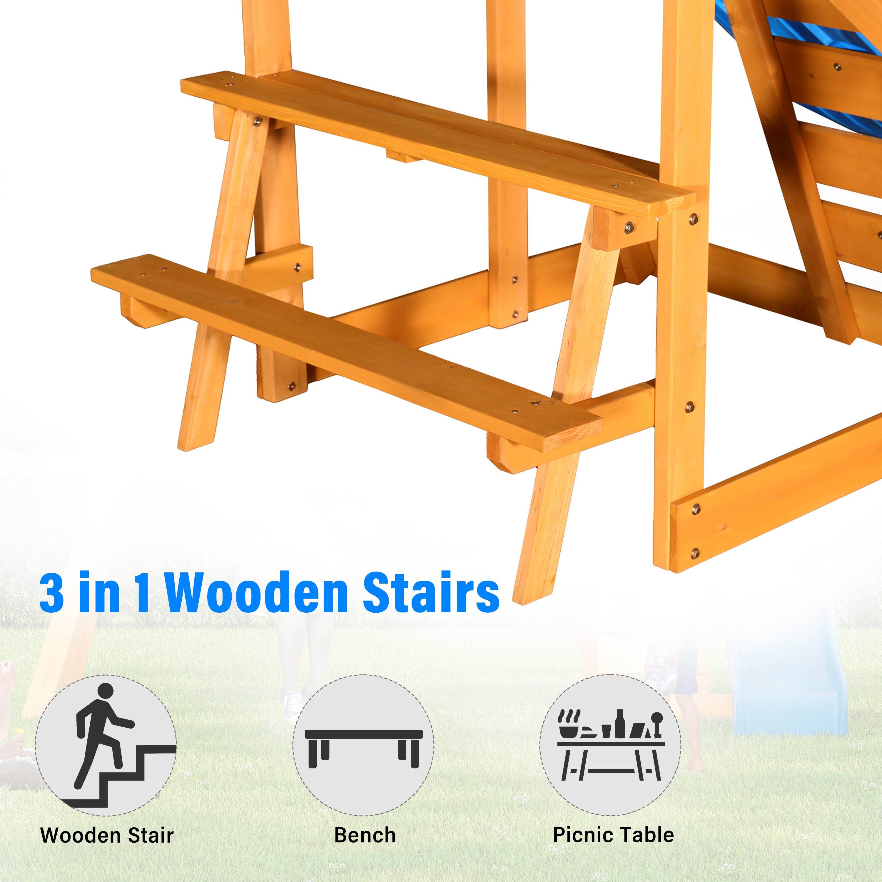 Wooden Outdoor Swing Set 3 in 1 Swing Set outdoor Children's Playset with Slide , 2 Swings and Climber for Garden, Backyard and Playground, Blue