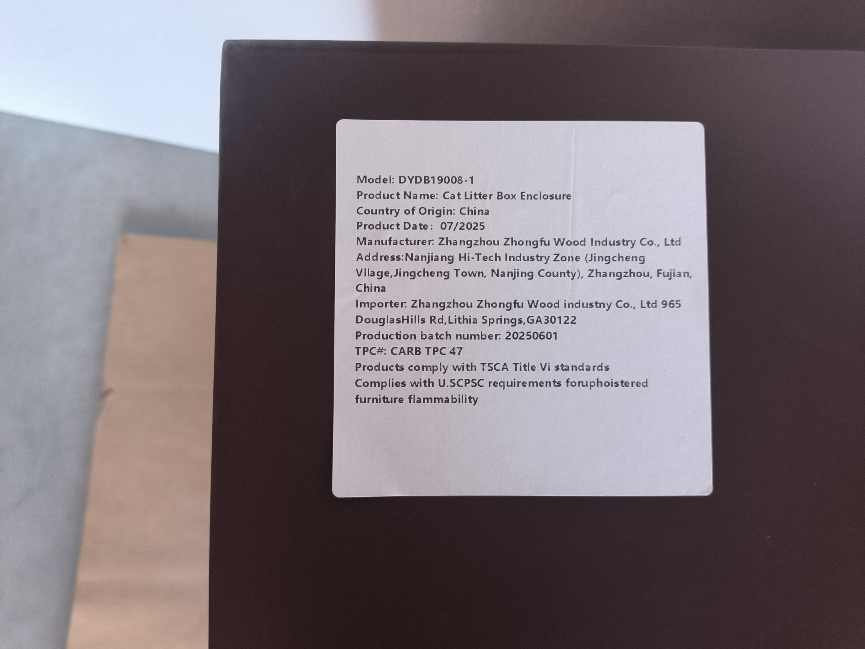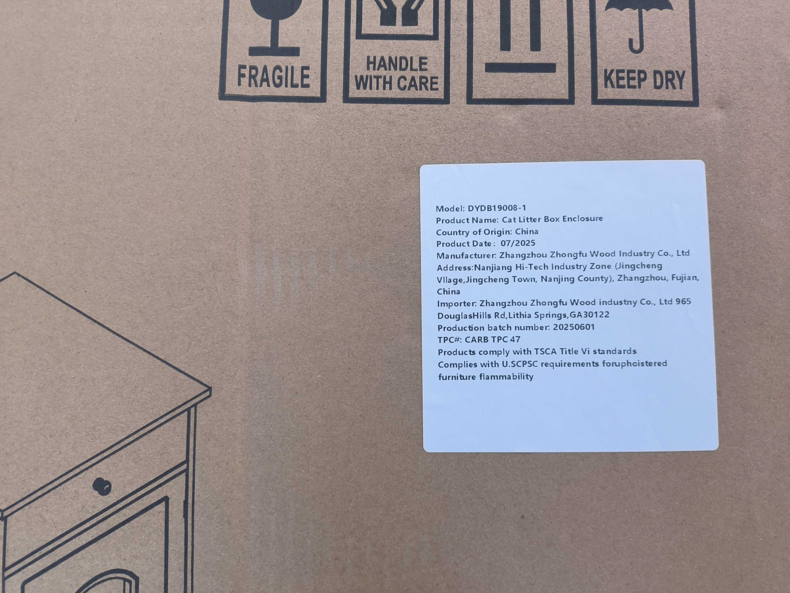 | Package Contents | 1 x Cat Litter Box Enclosure; 1 x Assembly Kit, 1 x Instructions |