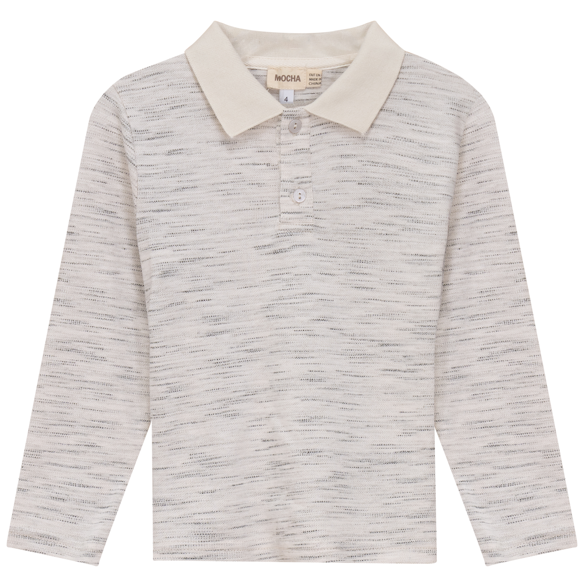 Boys long sleeve woven polo with center front button opening and collar. ֲ