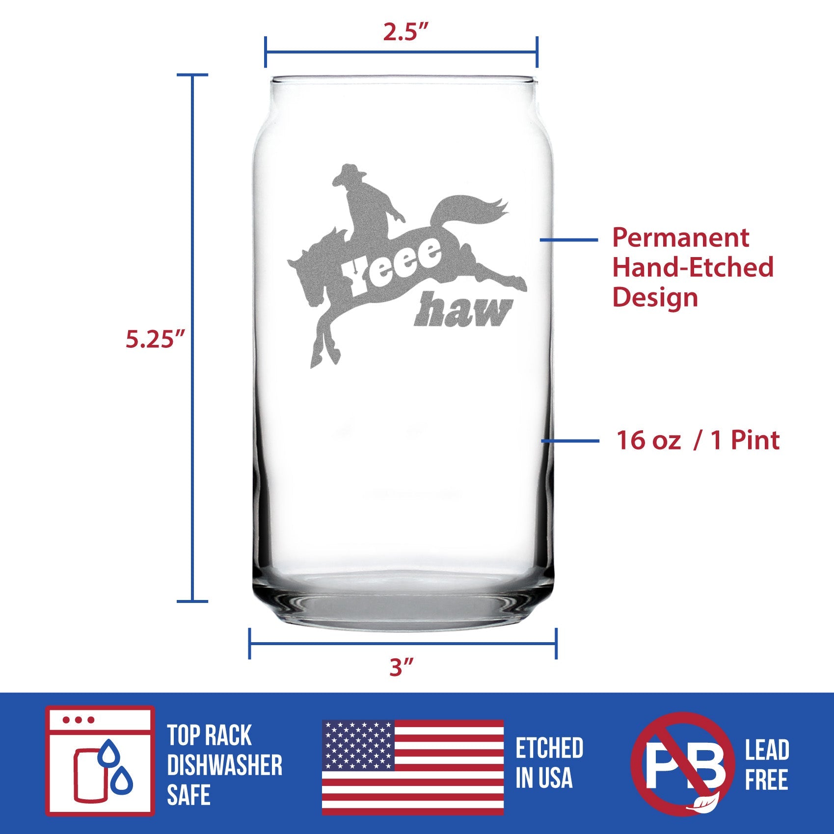 Yeehaw Engraved Beer Can Glass Gifts Rodeo Party Decor & Western Home Decorations Beer Can Shaped Pint Glass - 16oz