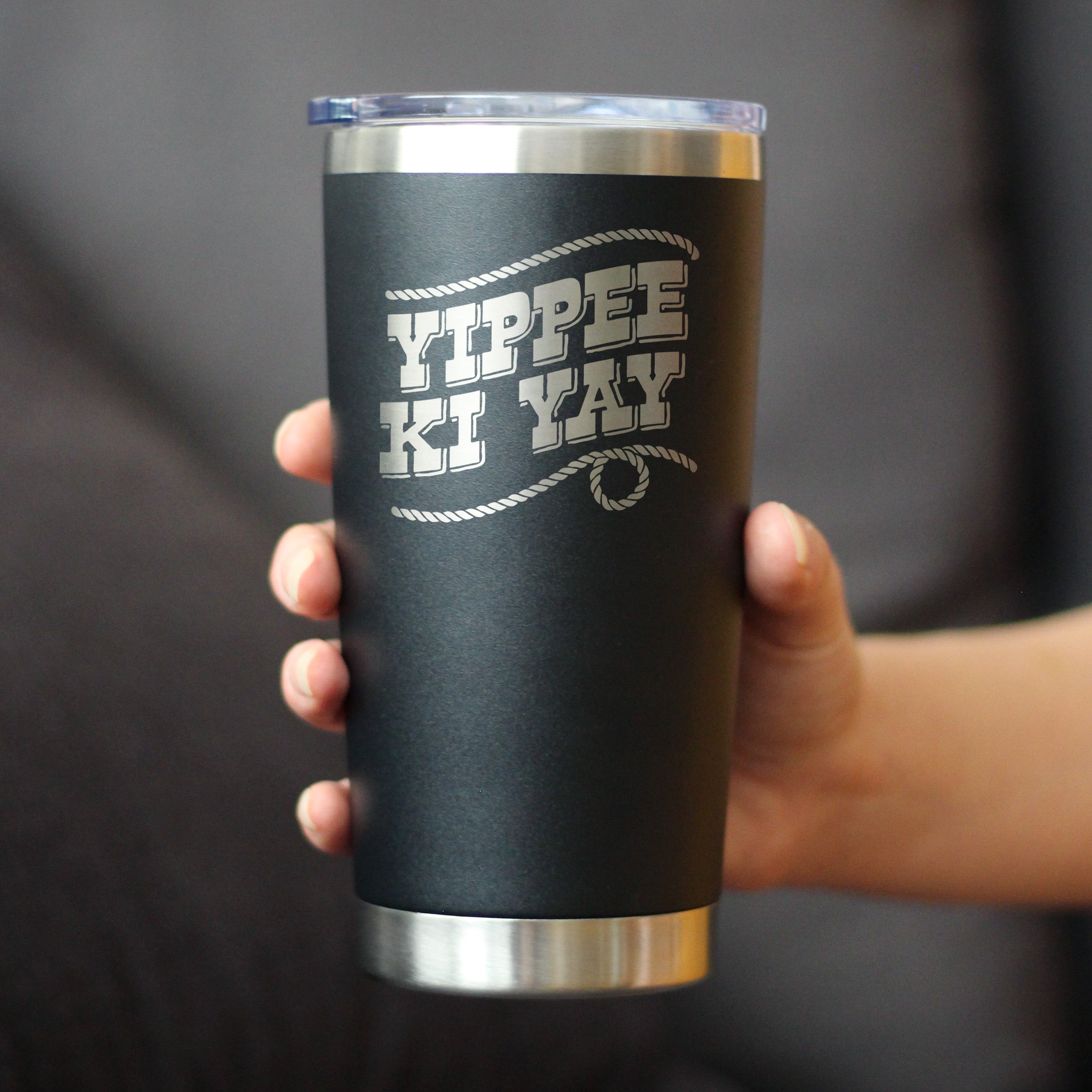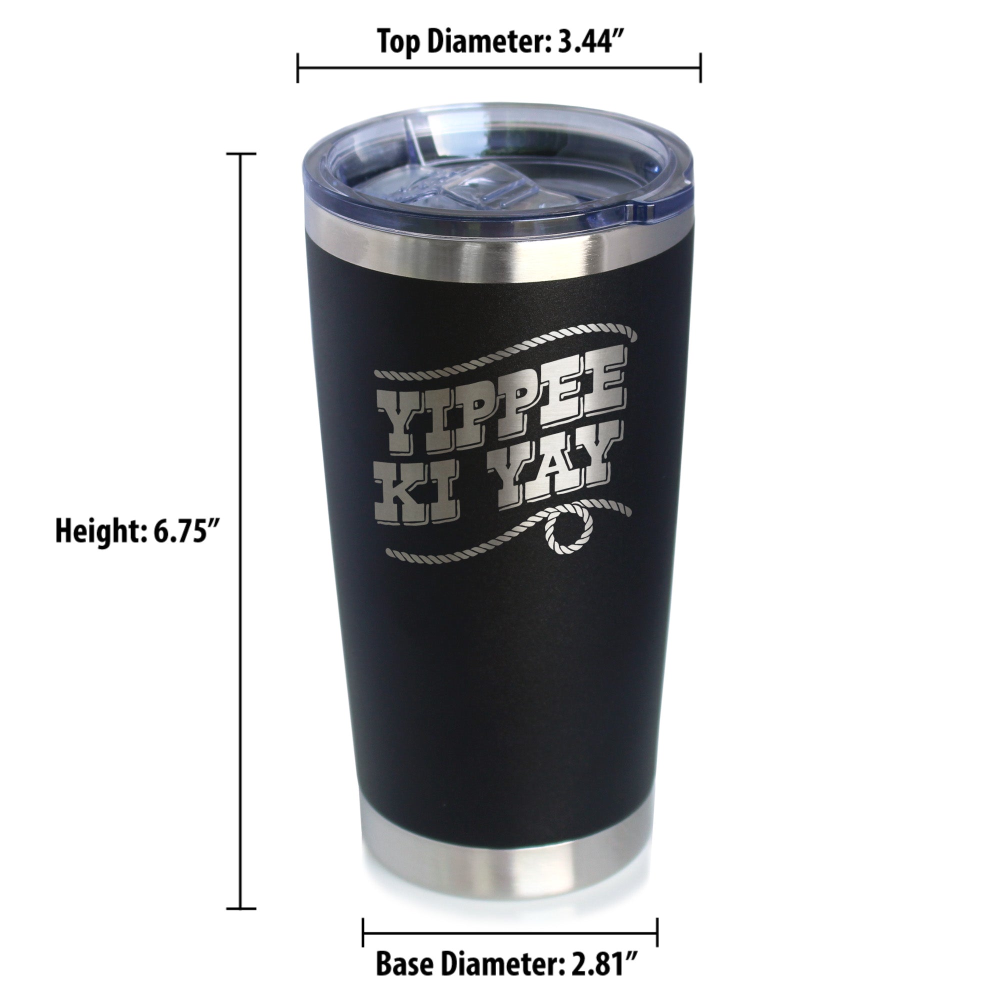 Yippee Ki Yay Insulated Coffee Tumbler with Sliding Lid Country Western Home Decor 20oz Stainless Steel Tumbler ‐ Black