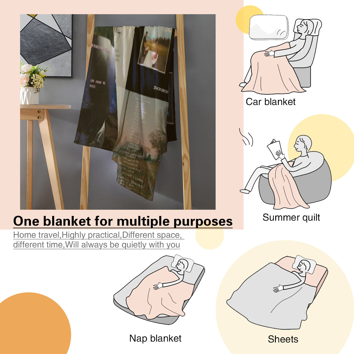 【Size Material】 [30"x40"; 40"x50"; 50"x60"; 60"x80"], Zach Bryan 12 Ablums Collection Cover throw blanket is made of 100% microfiber polyester, plush, fluffy, light, and breathable. Feel warm and comfortable when you snuggle on the sofa or bed.