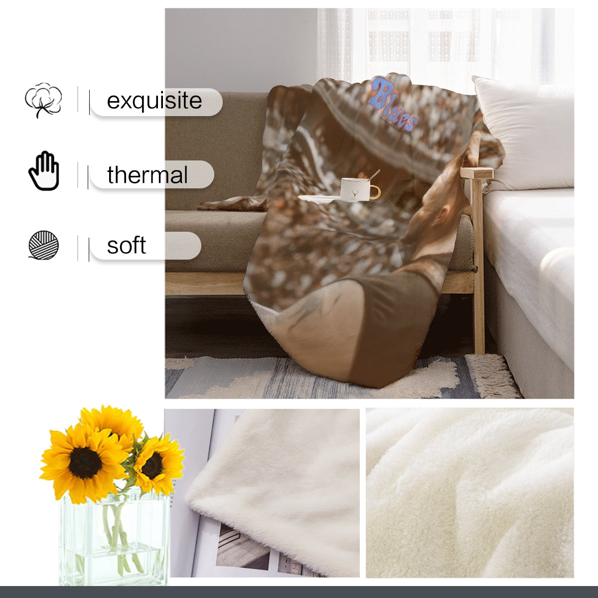 【Easy to Clean】 Wash with cold or warm water. It must be dried at a low temperature to maintain the quality and color of the blanket and make the blanket more durable.