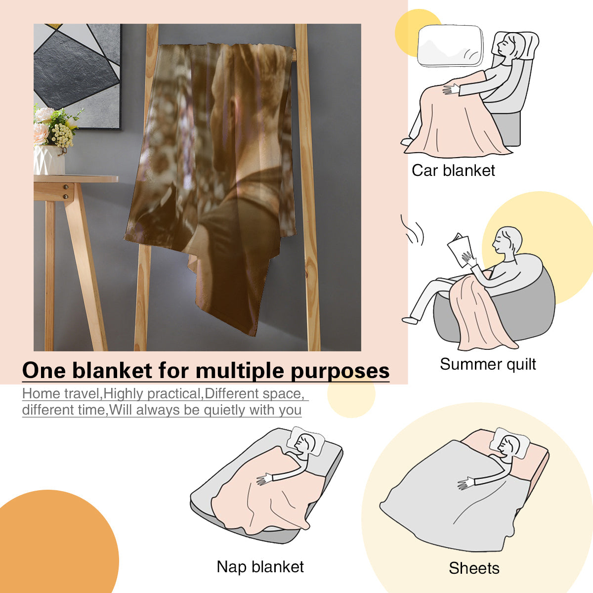 【Versatile Usage Scenarios】 This throw blanket is lightweight and durable, convenient to carry when camping outdoors, backpacking, on Vacation, on RV trips, or on a picnic.Perfect for snuggling up on the couch, reading books, watching TV, relaxing in your living room, or bedroom- enjoying happy and leisure hours.