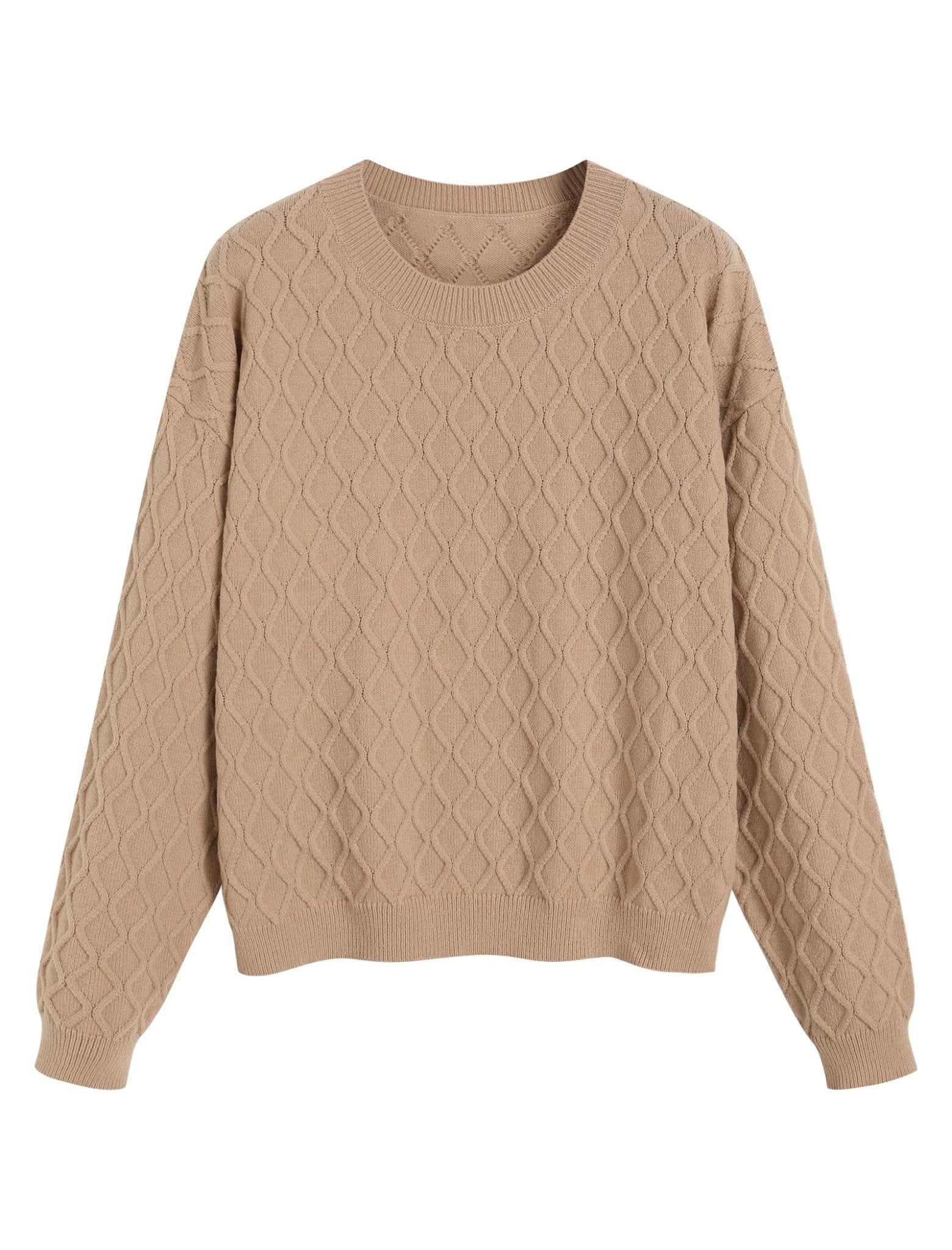 ZAFUL Women's Cable Knit Sweaters Trendy Fall Crewneck Long Sleeve Casual Loose Jumper Pullover Oversized Sweater Tops 2025 ‐ Apricot / X-Large