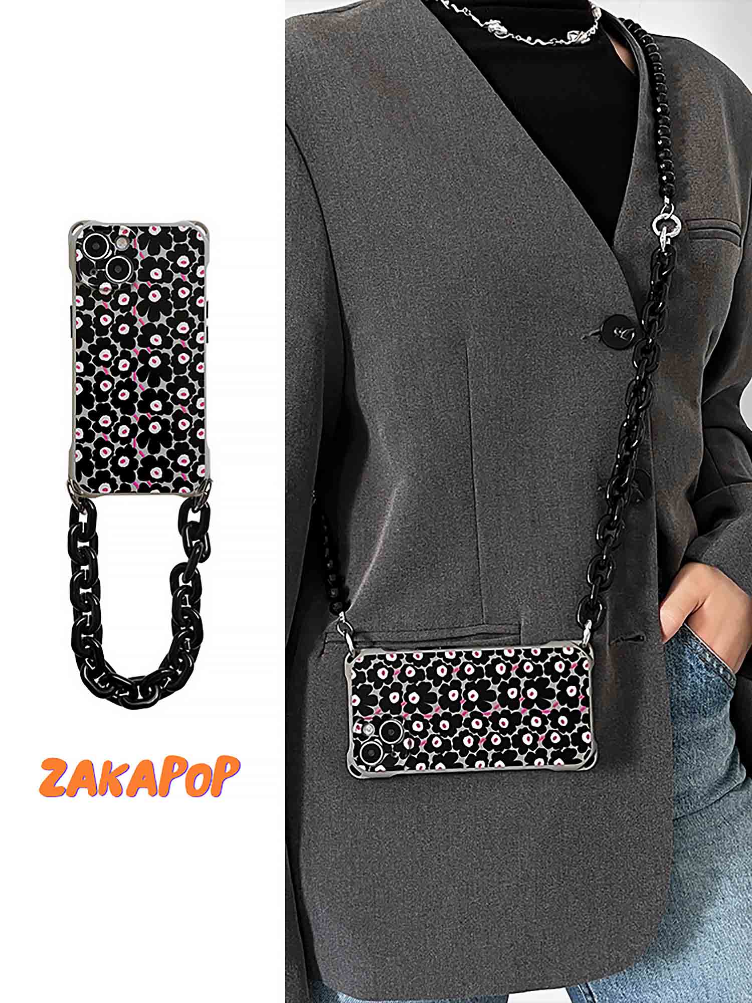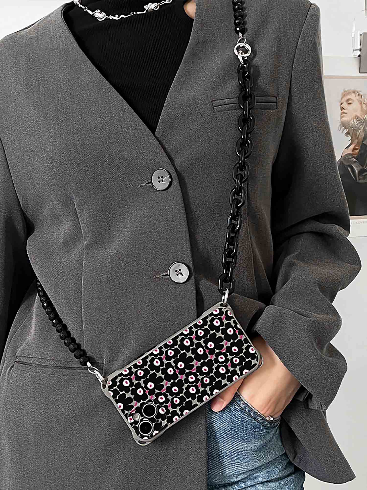 ZAKAPOP's Floral Spread Sling Bag Phone Protective Case ‐ Sling Bag (Phone Case & Short And Long Chain) / iPhone 15 Pro
