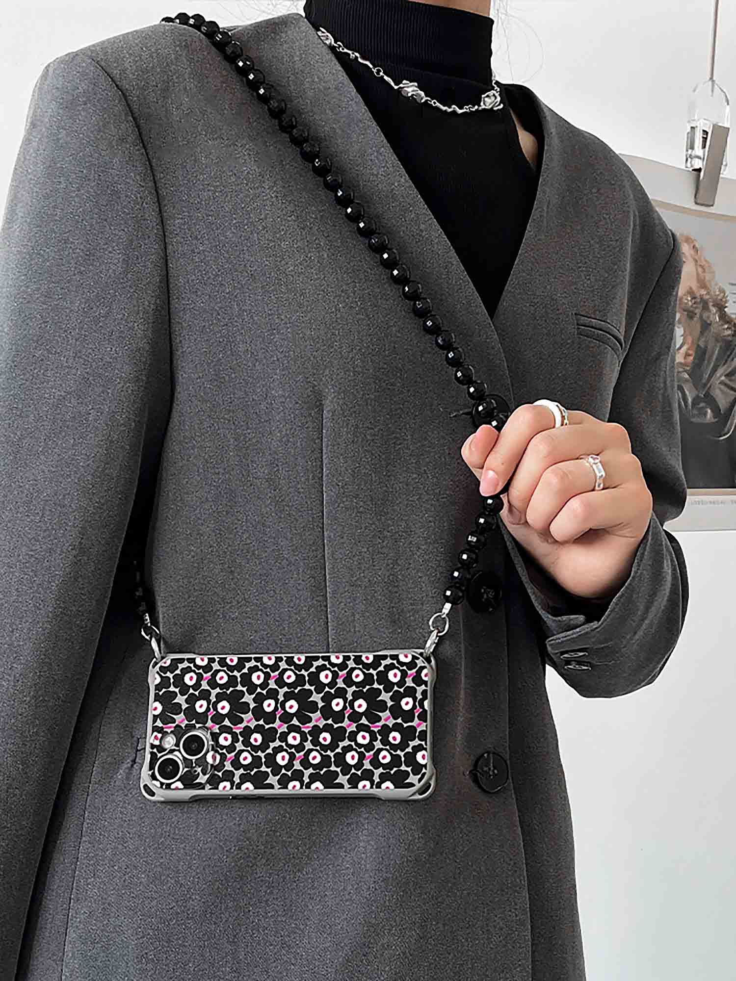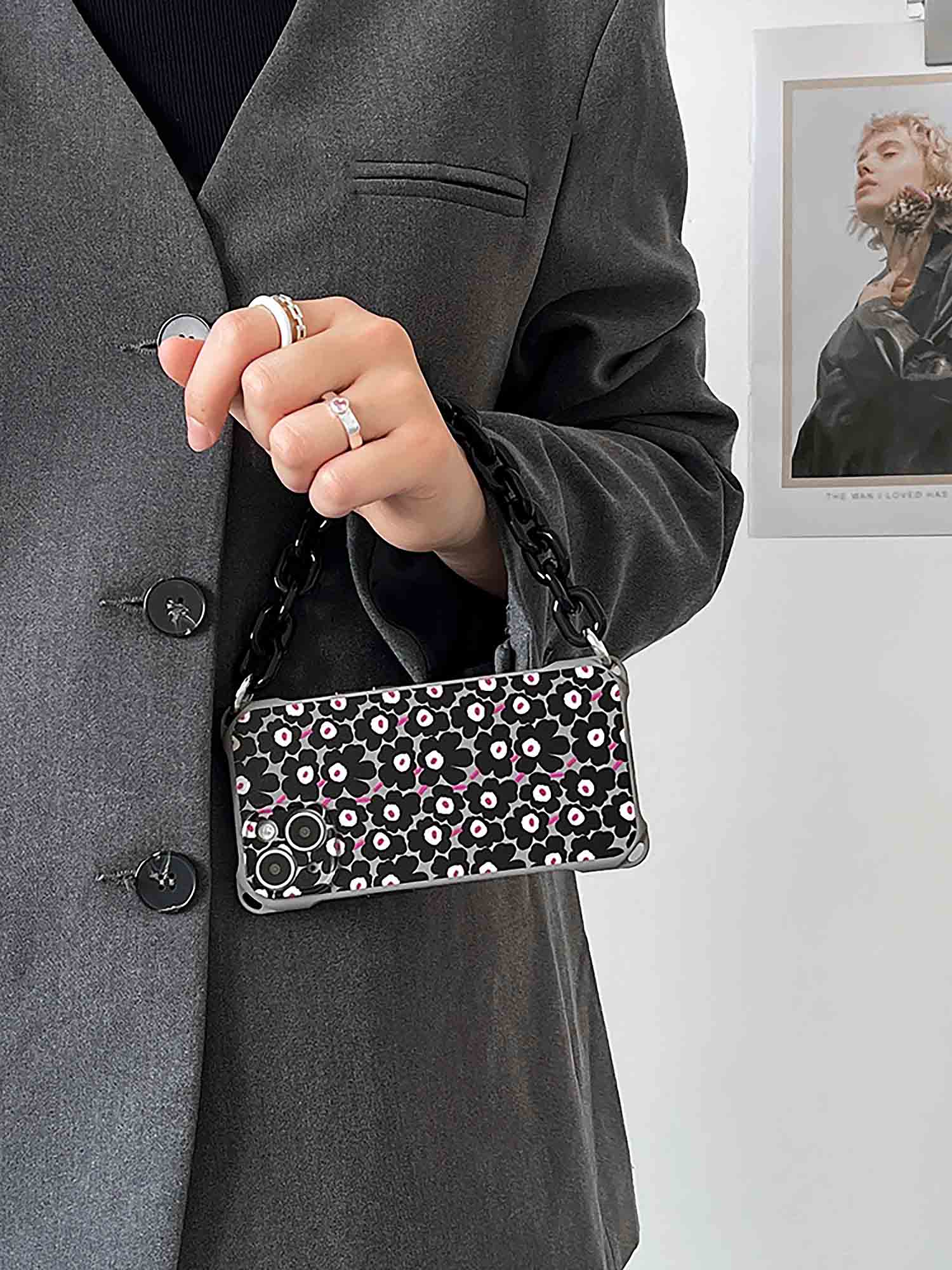 🖌 Stylish Design: Floral Pattern adds a trendy and fashionable touch to your phone case. Comes with a Chain for Handheld or Shoulder-Carry Options. The phone case is hangable from every corner.