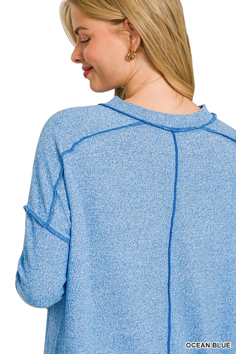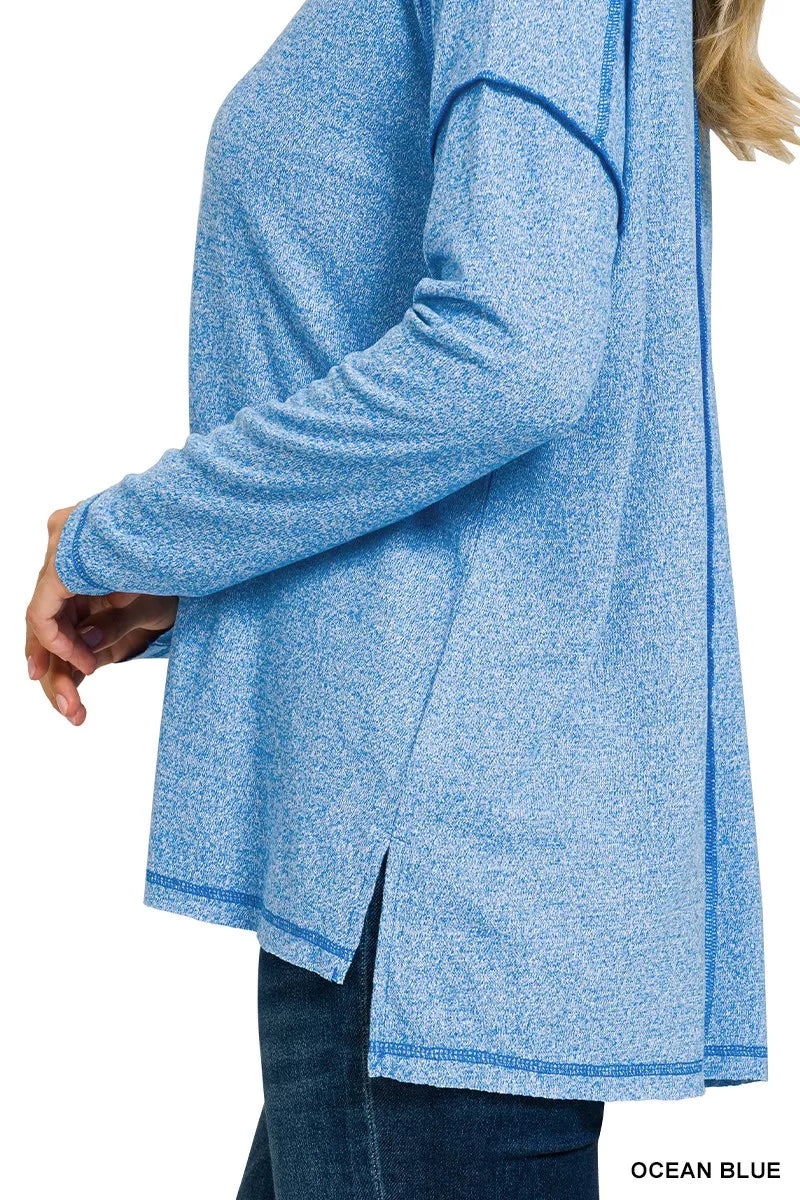 Zenana Full Size Melange Hacci Exposed Seam Hi-low Tee Plus Size ‐ OCEAN BLUE / S/M
